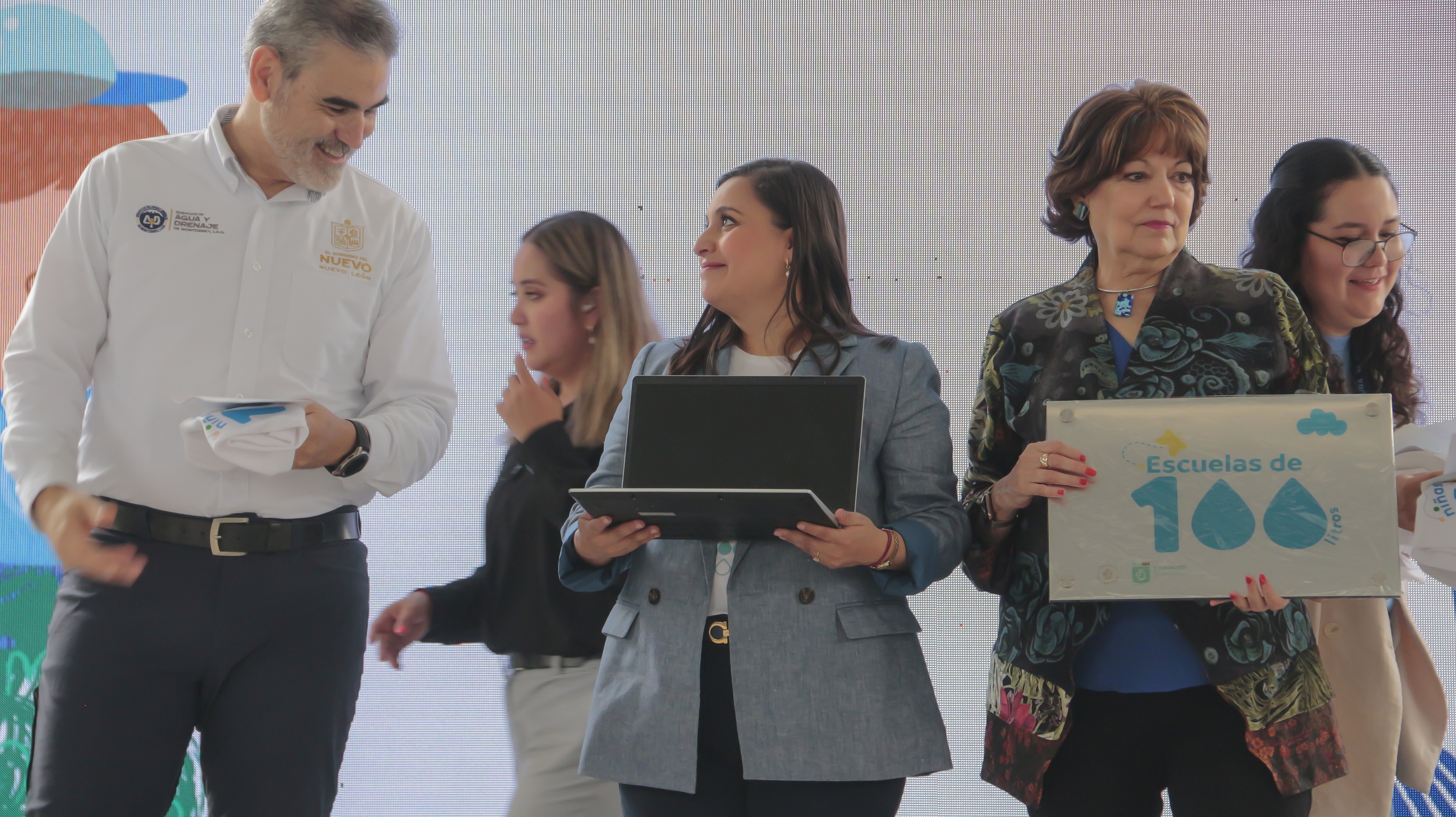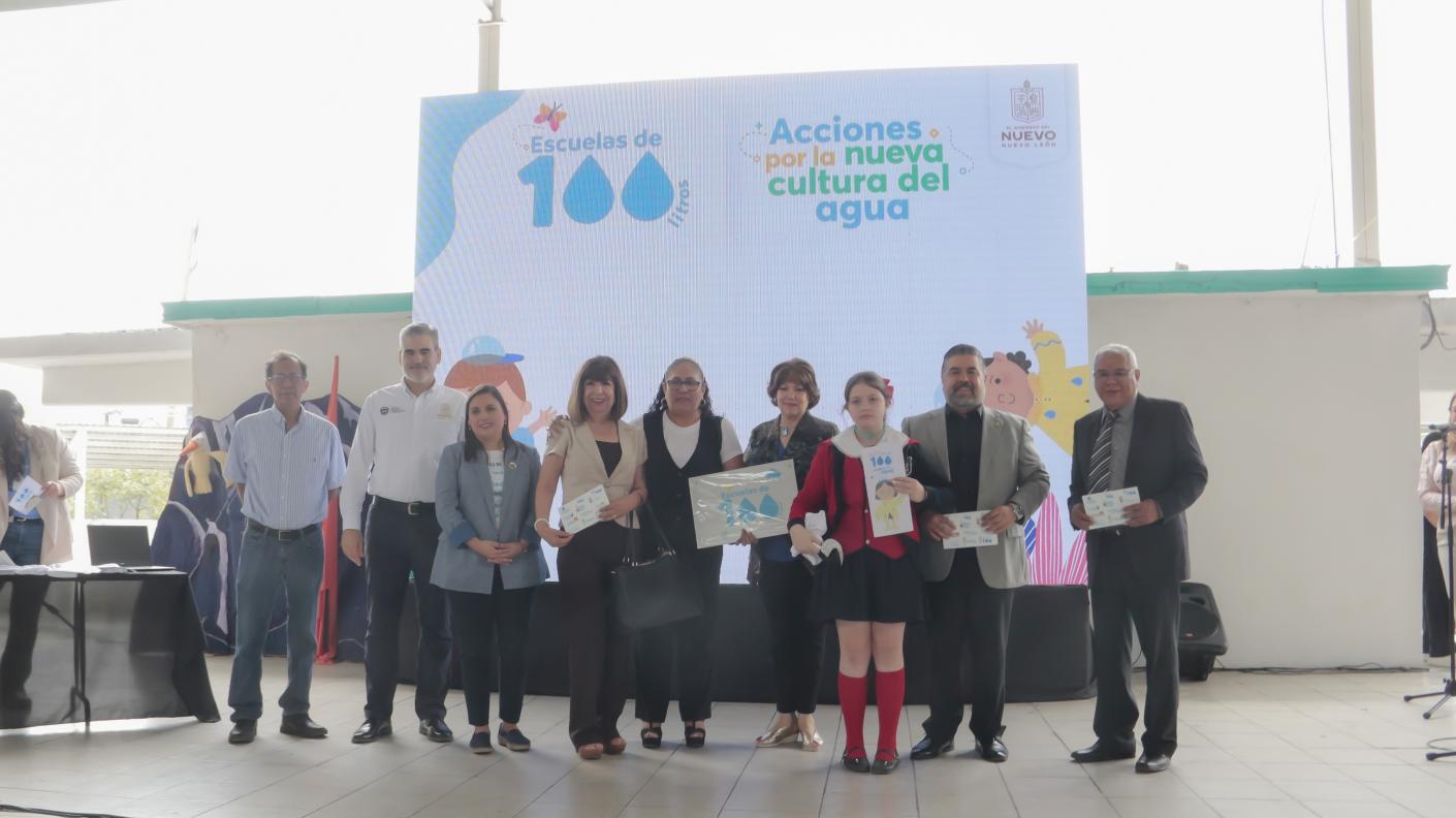 Dentro de la agenda prevista de este gran esfuerzo del Gobierno de Nuevo León por acercar a las infancias incentivos para participar en una nueva cultura del cuidado del agua, se realizó la premiación de las escuelas ganadoras en los concursos de Cultura del Agua, así como de las actividades “Crear mi cartel para cuidar el agua”, la campaña a nivel secundaria y la presentación de la animación “El Juramento de la niñas y niños de 100 litros”.
