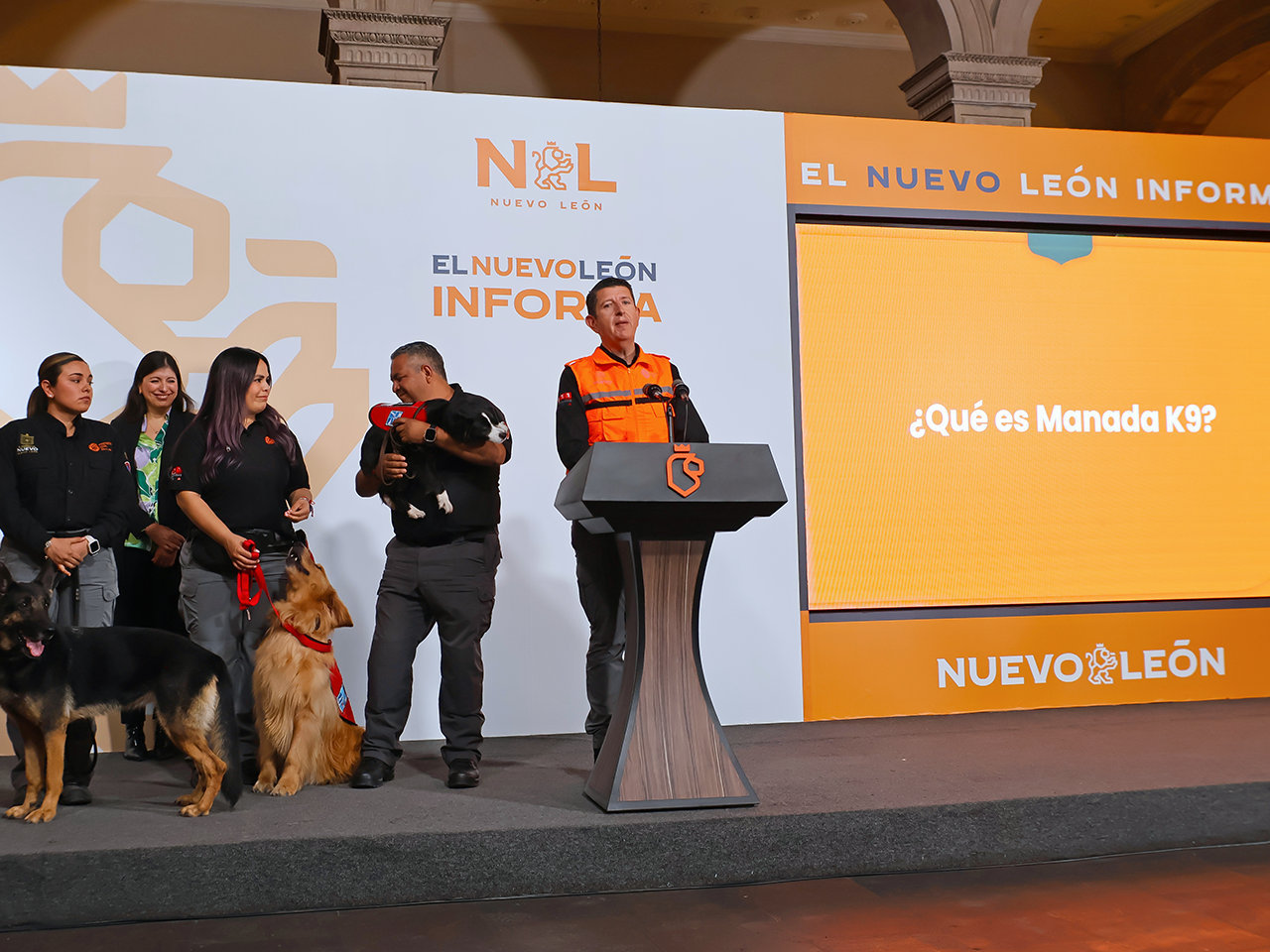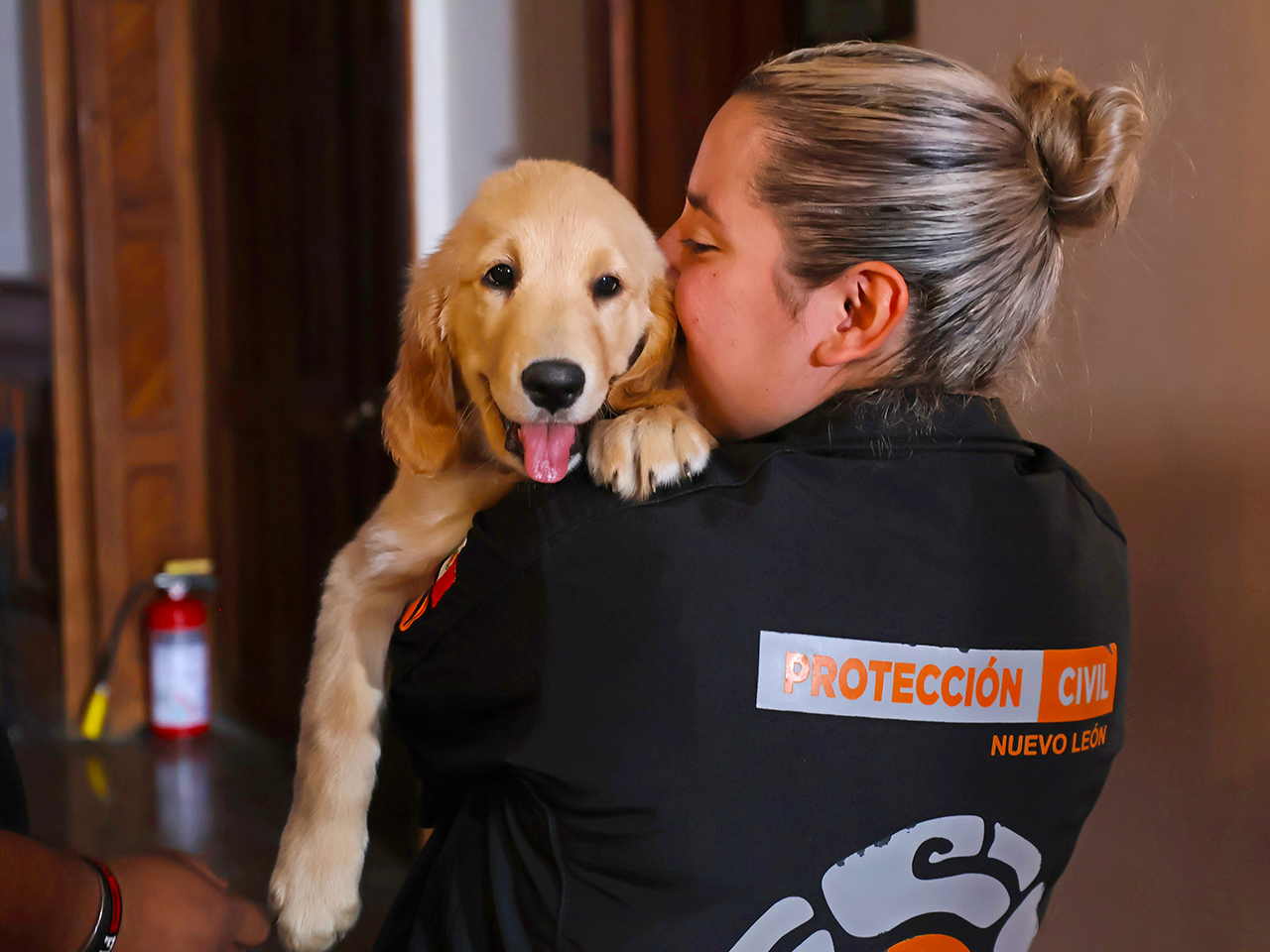 Monterrey, Nuevo León.- En el Nuevo León Informa, el Director de Protección Civil del Estado, Erik Cavazos presentó a la nueva integrante del equipo Manada K9, la cual se trata de una perrita labrador de tres meses de edad, e hizo una invitación a la población para ponerle nombre.