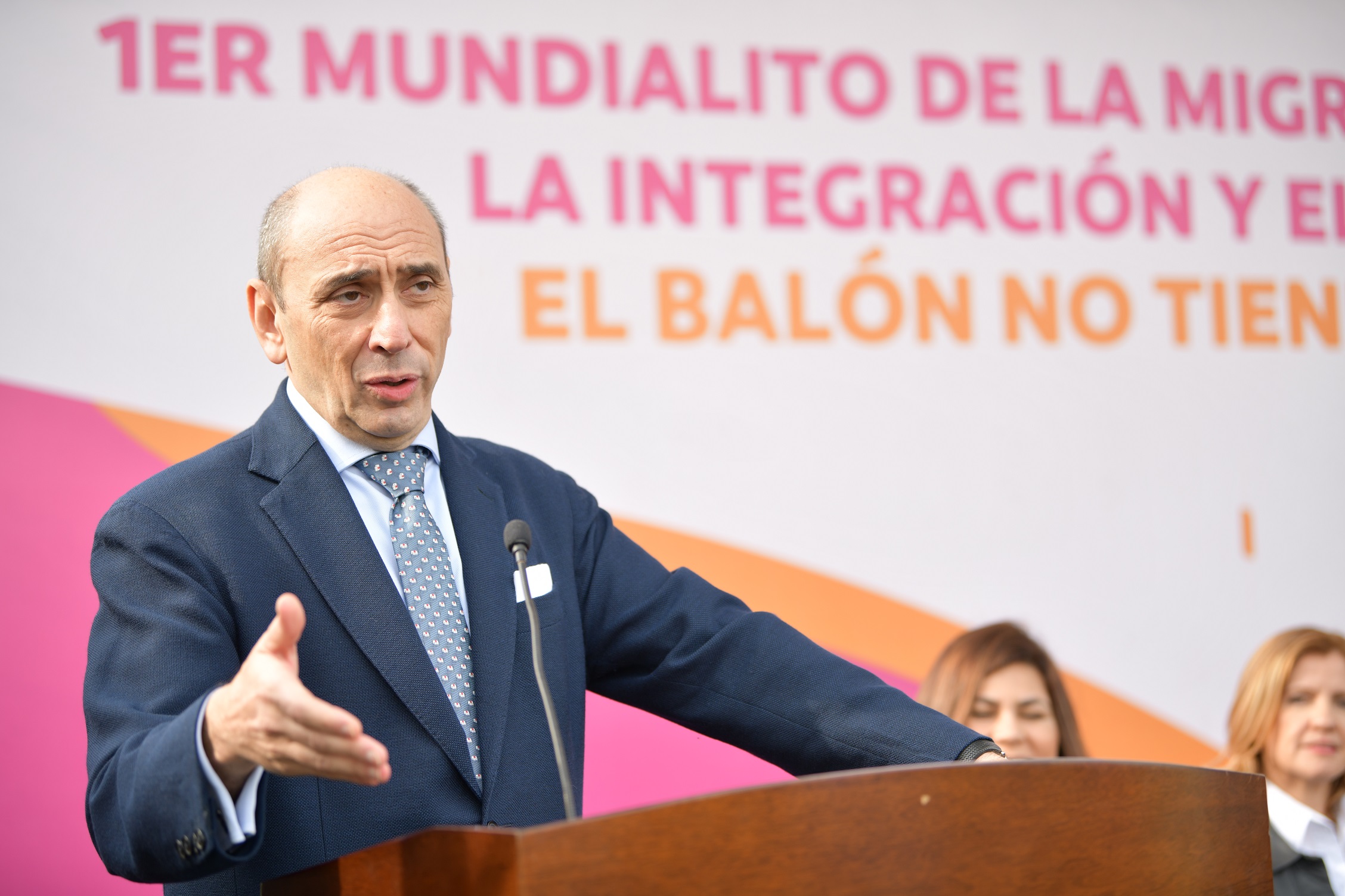 “Demostremos que todos somos iguales, que todos somos susceptibles de aportar algo y de enriquecer que es lo que hace la migración fundamentalmente, enriquecer a los ligares de acogida. El deporte en general une y particularmente el futbol vincula, asocia y nos ayuda a comprender”, puntualizó Lorenzo Jiménez de Luis, Representante Residente del Programa de las Naciones Unidas para el Desarrollo (PNUD) en México
