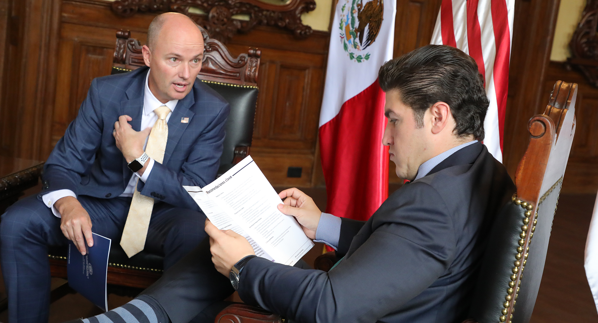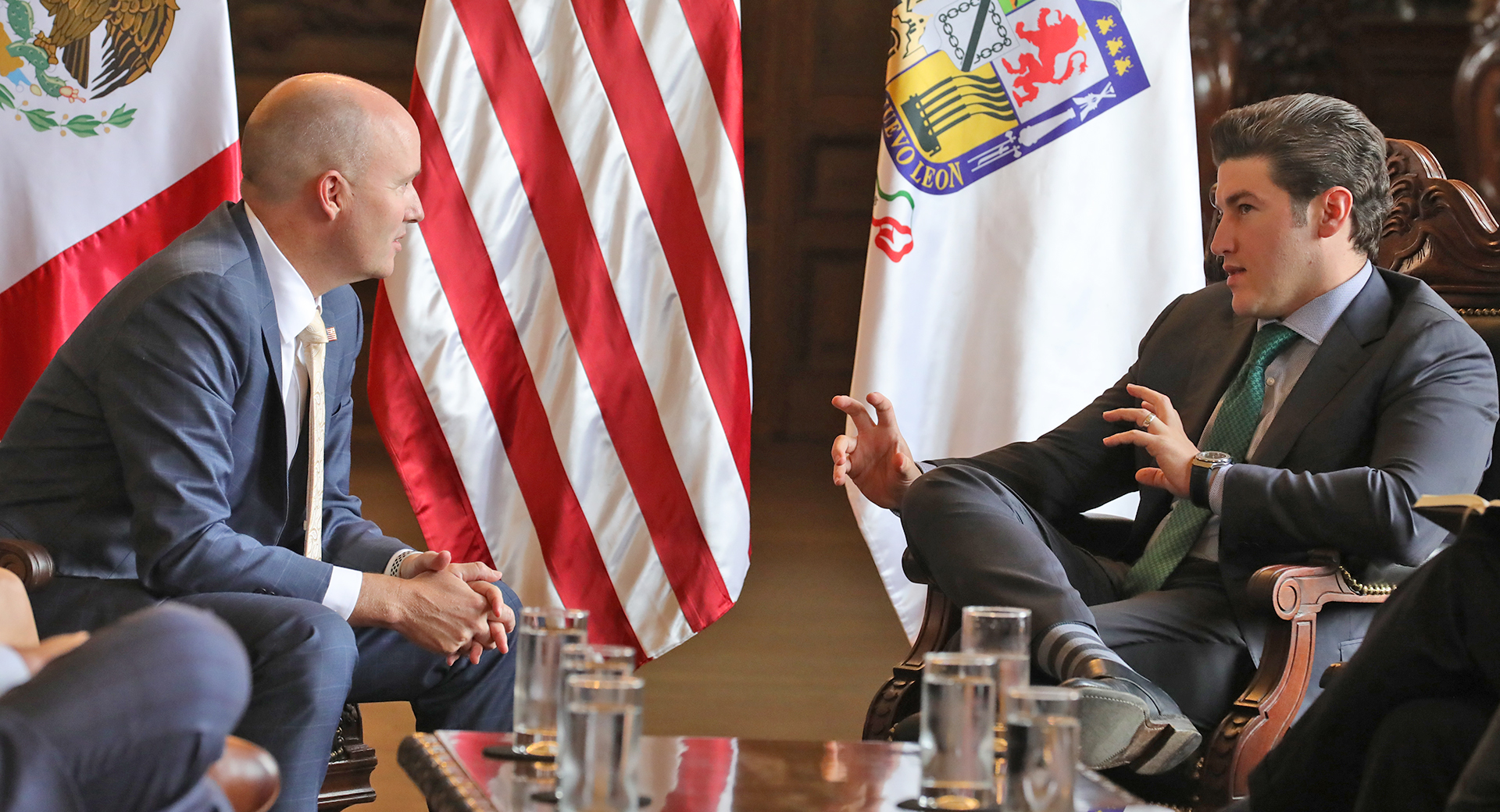 Monterrey, Nuevo León.- Al reunirse con el Gobernador de Utah, Spencer Cox, el Gobernador Samuel Alejandro García Sepúlveda propuso una reunión entre los Gobernadores de México y Estados Unidos.
