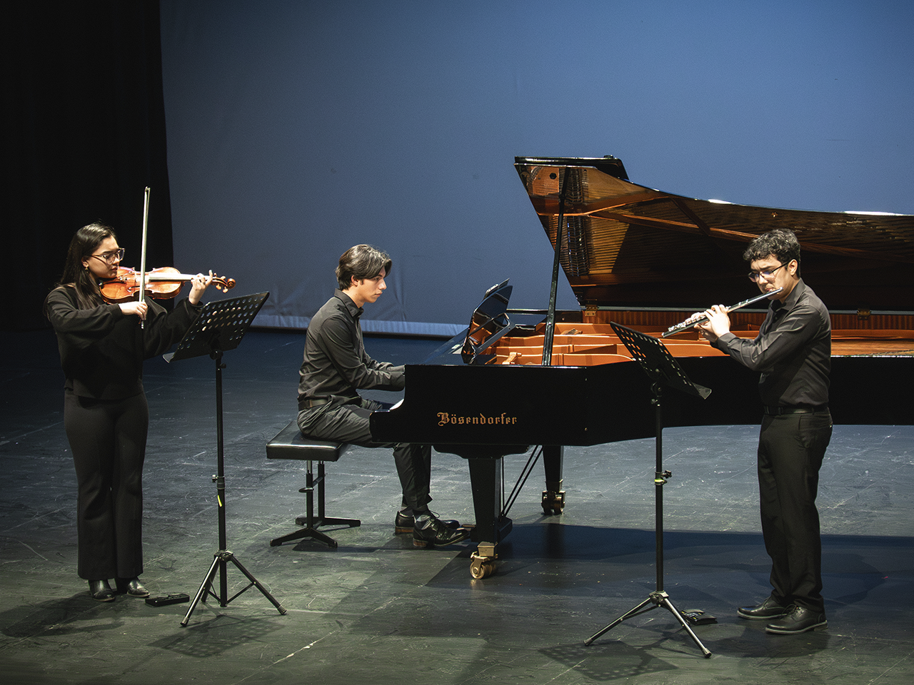 Añade que, durante el proceso, las sesiones con los intérpretes Luis Alonzo Silvasantisteban (flauta), Karla Arias (violín) y Marco Andrés Álvarez Sánchez (piano) fueron fundamentales, pues pudieron ajustar cosas, replantear decisiones y entender mejor cómo funcionaba su música en la práctica. El concierto fue el resultado de todo ese proceso.