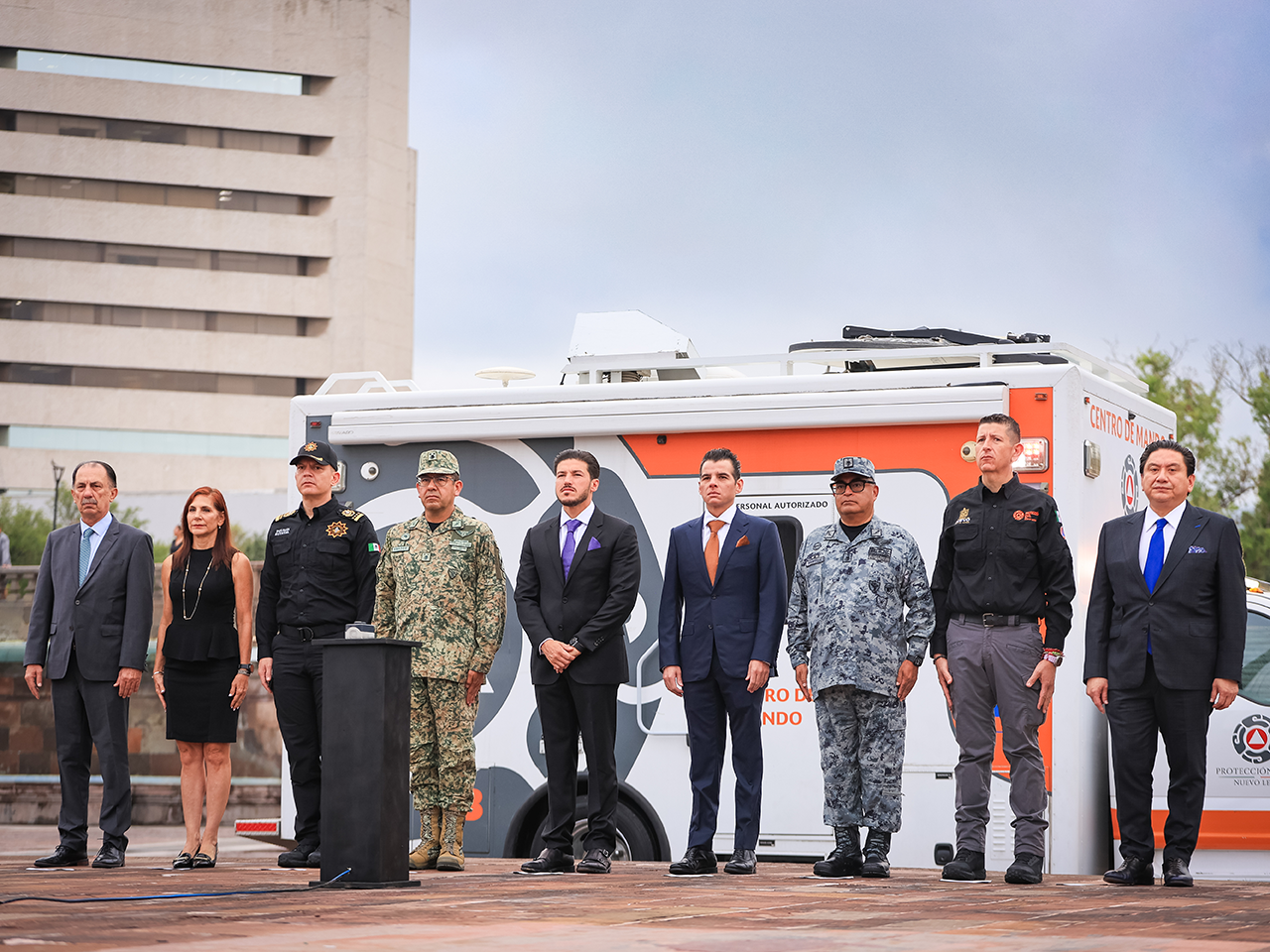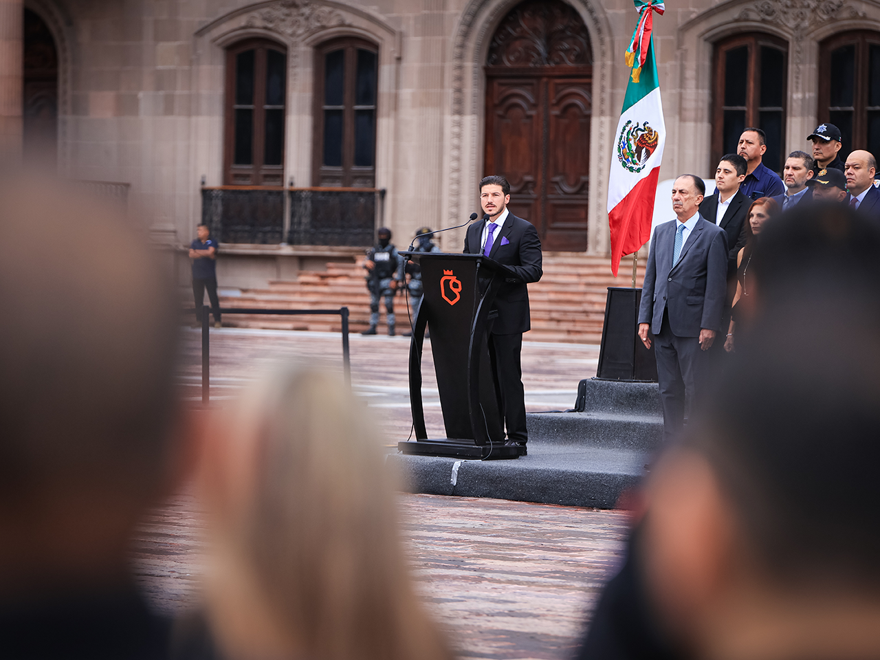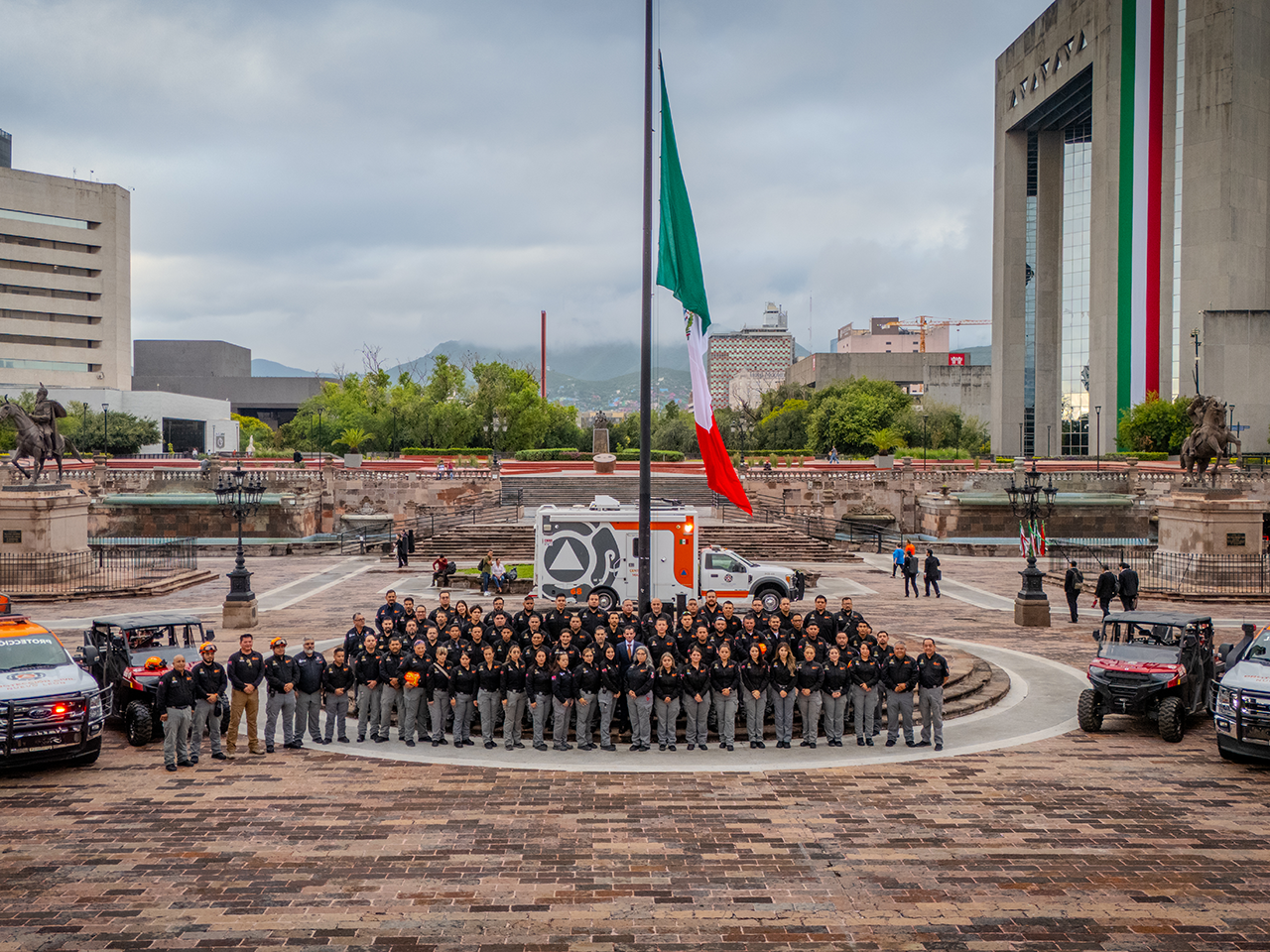 Monterrey, Nuevo León.- El Gobernador del Estado, Samuel Alejandro García Sepúlveda encabezó en Nuevo León la ceremonia del Día Nacional de Protección Civil, como una señal de respeto y duelo por las víctimas de la tragedia del sismo de la Ciudad de México registrado en 1985.