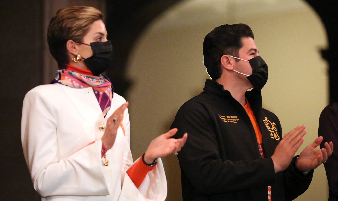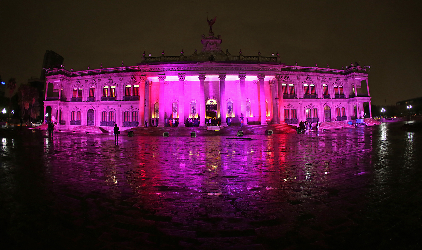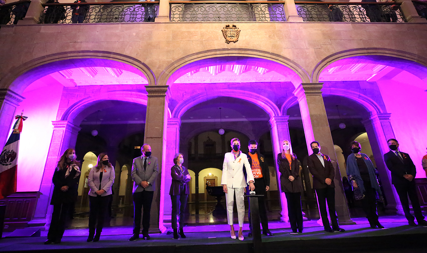 Al iluminar el Palacio de Gobierno de violeta y acompañado de la titular de la Oficina AMAR a Nuevo León, Mariana Rodríguez Cantú, el Mandatario dijo que con esta acción se reitera la prioridad que tiene su administración para darle a las mujeres el lugar preponderante que merecen en la sociedad.
