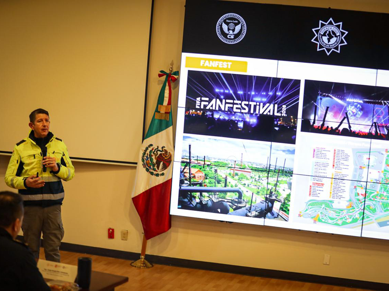 La reunión fue encabezada por el Dr. Erik Cavazos Cavazos, Director de Protección Civil Nuevo León, contando con la participación de Gerardo Guadalupe Escamilla Vargas, Secretario de Seguridad del Estado de Nuevo León; del Comisario Jorge Sergio Ron Cárdenas, Director General del C5 de la Secretaría de Seguridad; del Gral. Brigadier E.M. Juan Ramón Corona Valencia, Comandante de la Fuerza de Tarea Conjunta para la Copa Mundial FIFA 2026 en Nuevo León; así como personal de la FIFA, directores de Protección Civil Municipales y responsables de estancias de atención a emergencias.