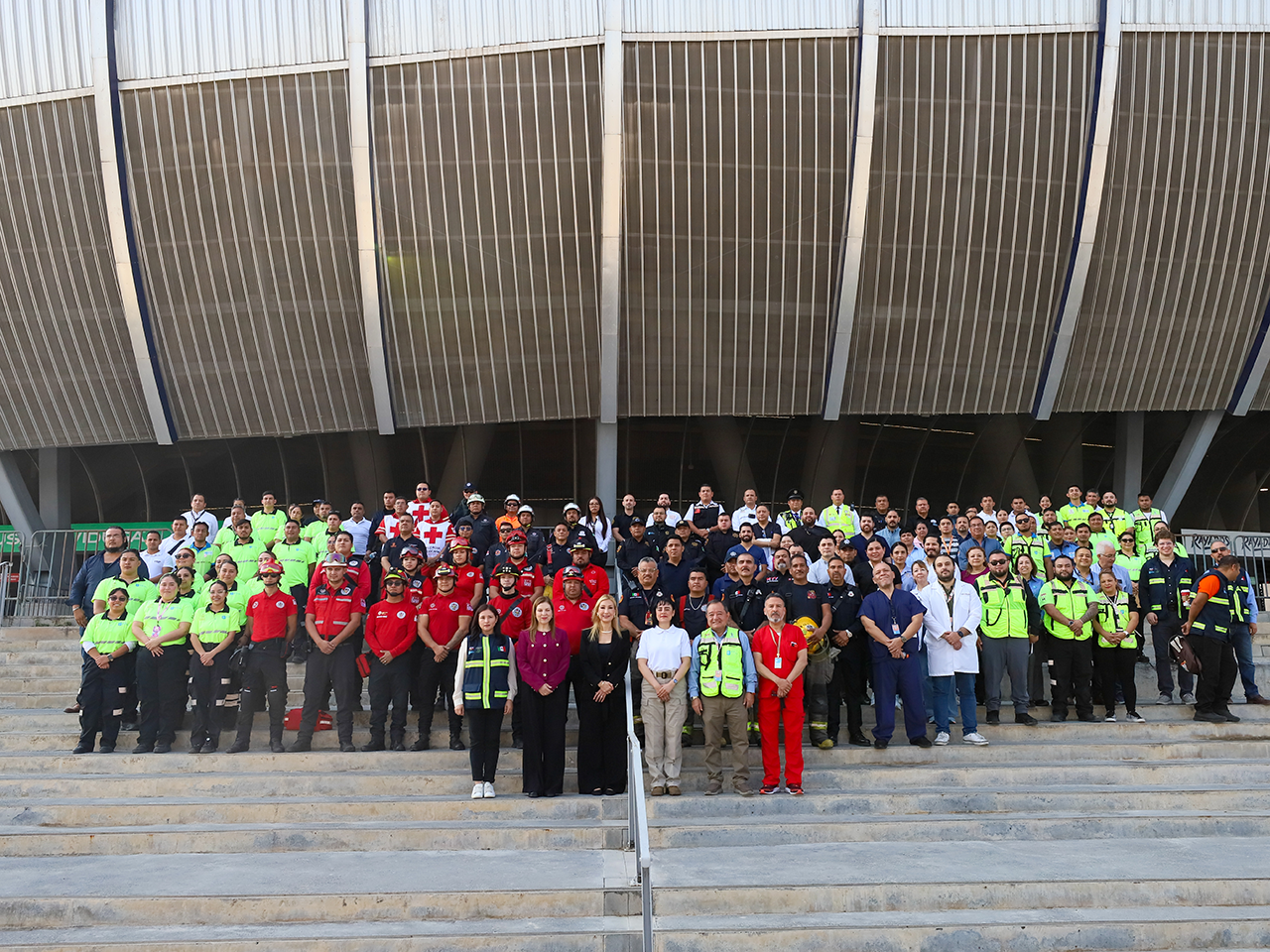Monterrey, Nuevo León.- A poco menos de 200 días del inicio del Mundial de Fútbol 2026, la Secretaría de Salud a través del Centro Regulador de Urgencias Médicas (CRUM) realizó un simulacro en el estadio BBVA, donde se desarrollará la justa mundialista.