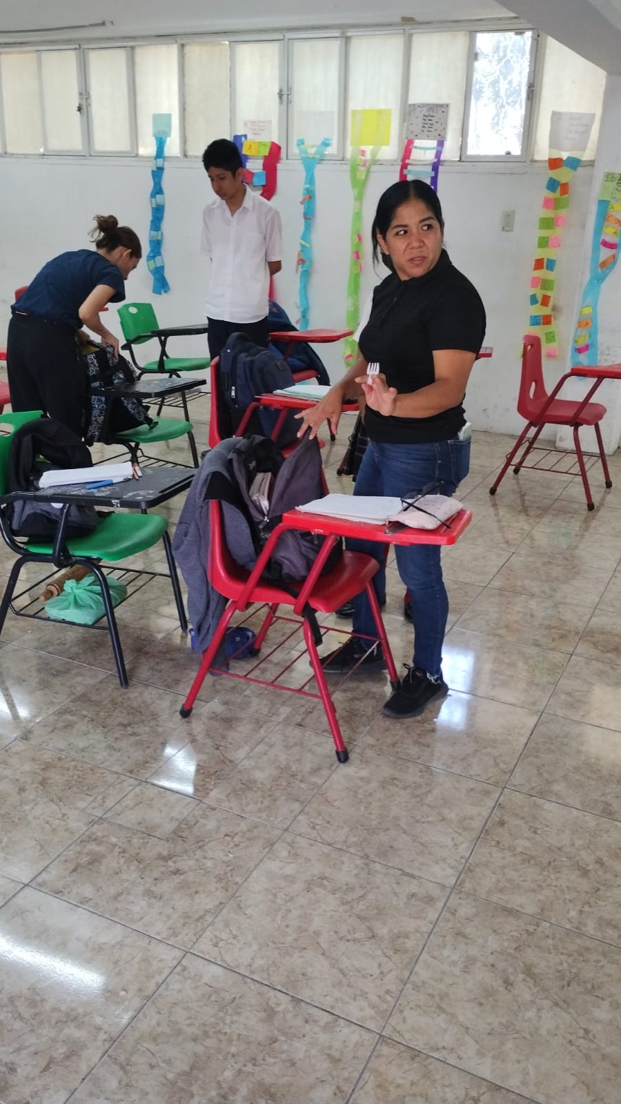 Personal de la Coordinación Estatal de Seguridad Escolar y del Instituto de Educación Socioemocional de la dependencia, acudieron a ambos planteles para ofrecer atención psicológica, supervisar la revisión de mochilas e impartir un taller de mediación para prevenir la violencia dentro de la comunidad escolar.