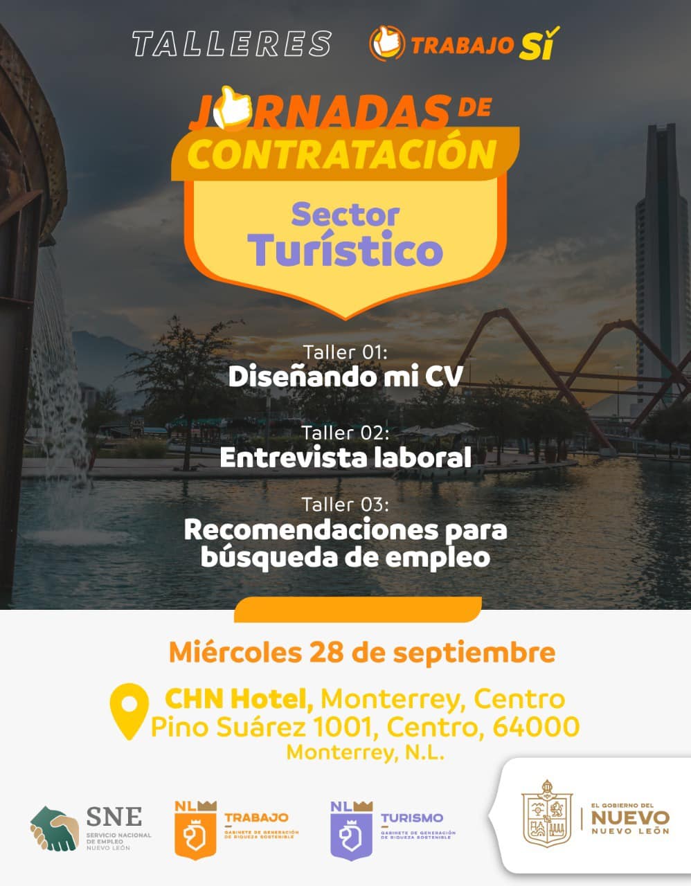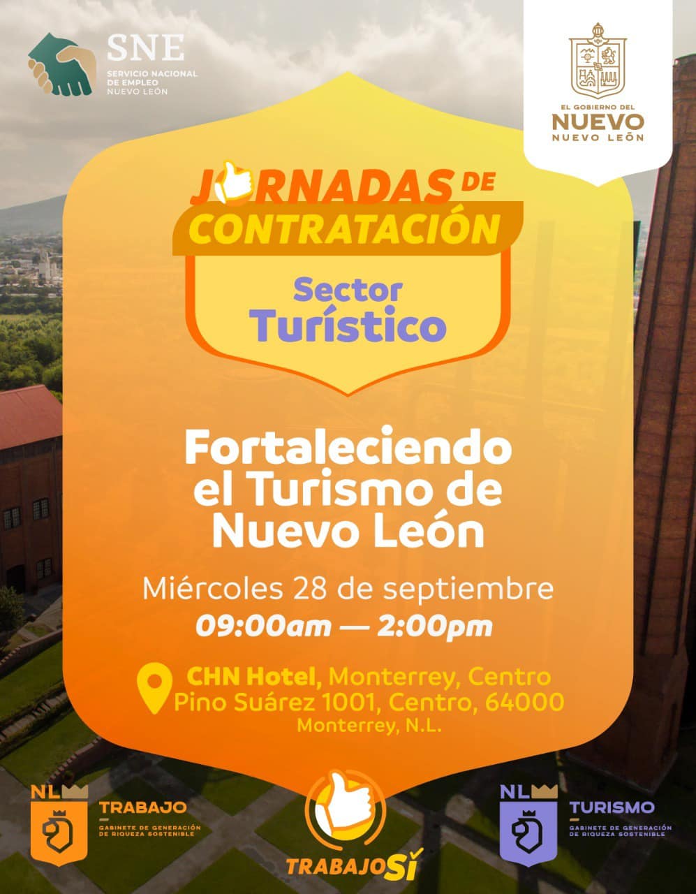 El día 28 se llevará a cabo la segunda jornada de contratación “Trabajo Sí” enfocada al sector turístico con la finalidad de fortalecer dicha industria en el Estado, en este evento se contará con la participación de 40 empresas quienes ofertarán más de 300 vacantes en giros como hoteles, restaurantes, aerolíneas, agencias de viajes, entre otros.