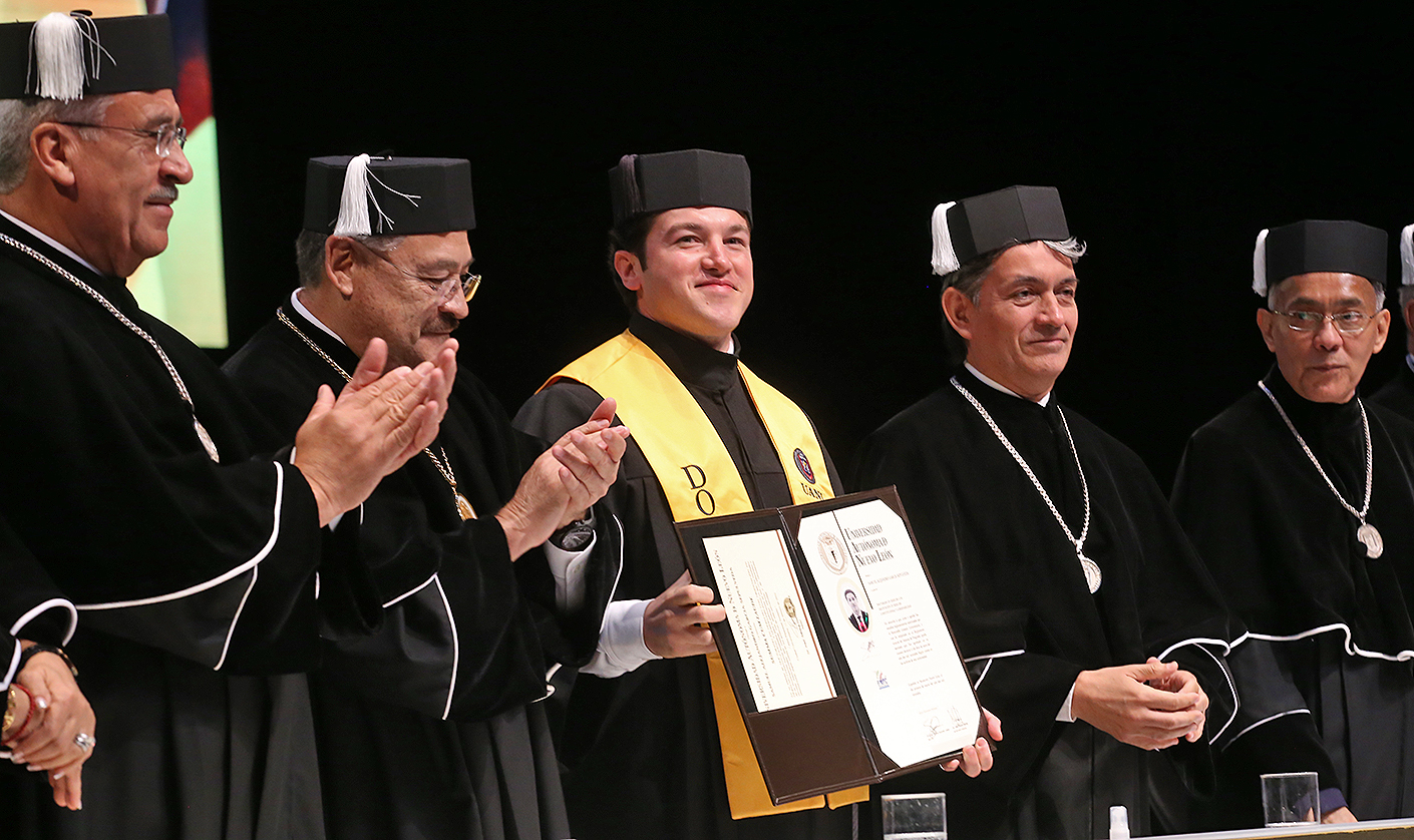 Recibe Gobernador Samuel García grado de Doctorado en la UANL
