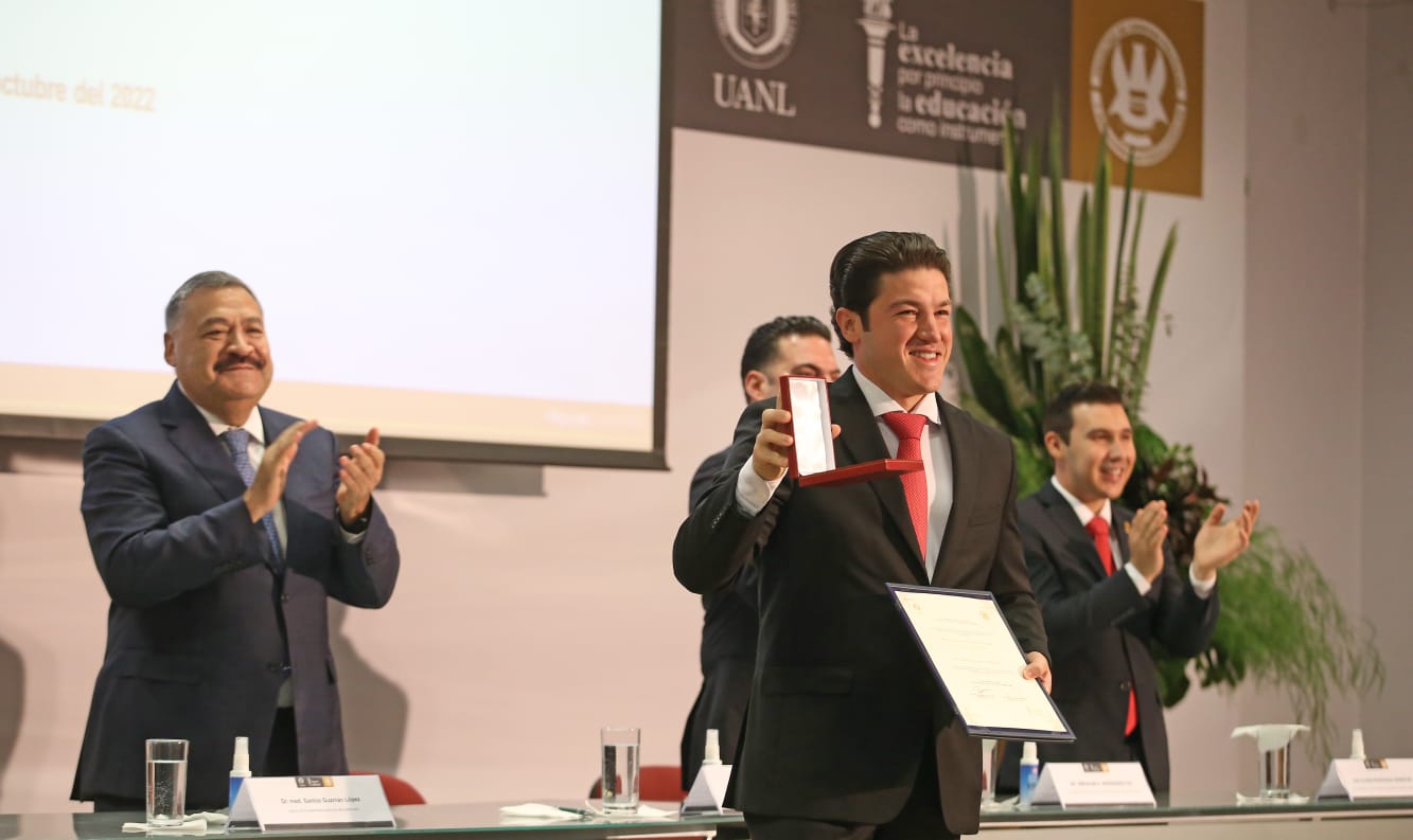 Por su trayectoria política de Diputado local, Senador de la República y Gobernador Constitucional de Nuevo León, Samuel Alejandro García Sepúlveda recibió la Medalla “José María Parás Ballesteros” en la categoría Mérito Ciudadano, que le otorgó la Facultad de Ciencias Políticas y Relaciones Internacionales de la UANL.