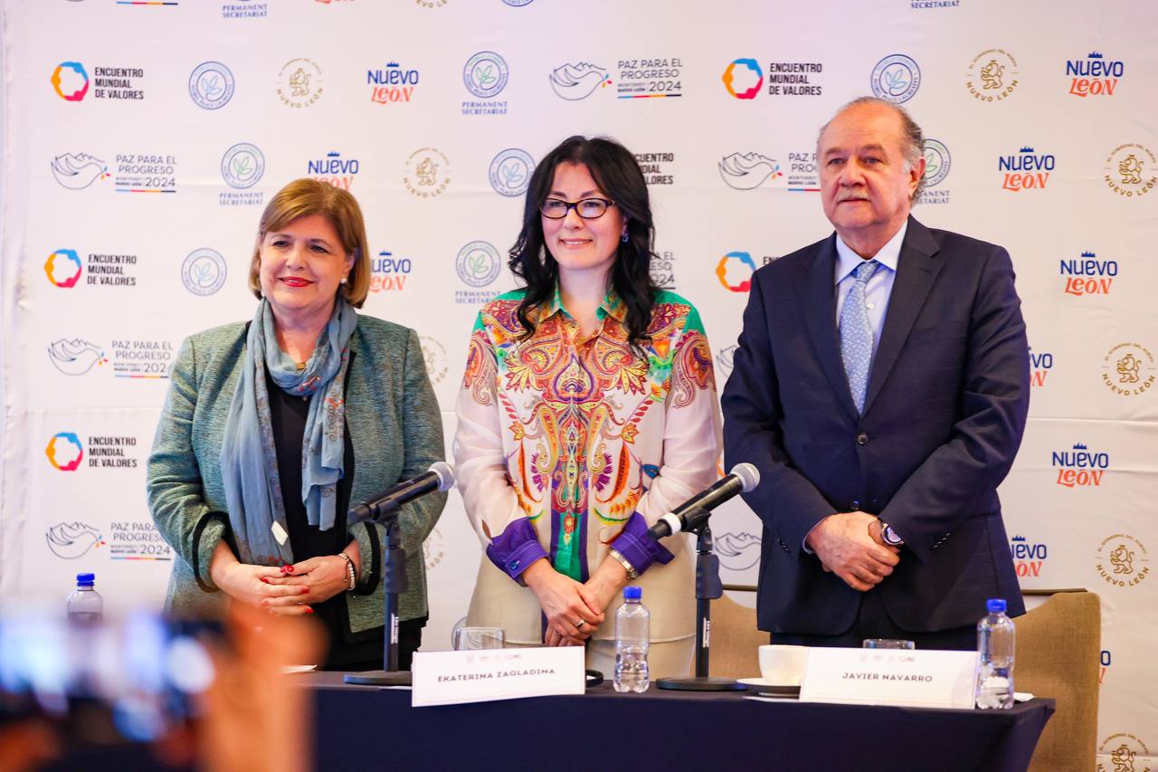 Javier Navarro Velasco, Secretario General de Gobierno en el Estado, participó en la presentación de este evento en la Ciudad de México, en conjunto con Ekaterina Zagladina, presidenta de la Cumbre Mundial de Premios Nobel de La Paz y de Cristina González Parás, presidenta del Encuentro Mundial de Valores.