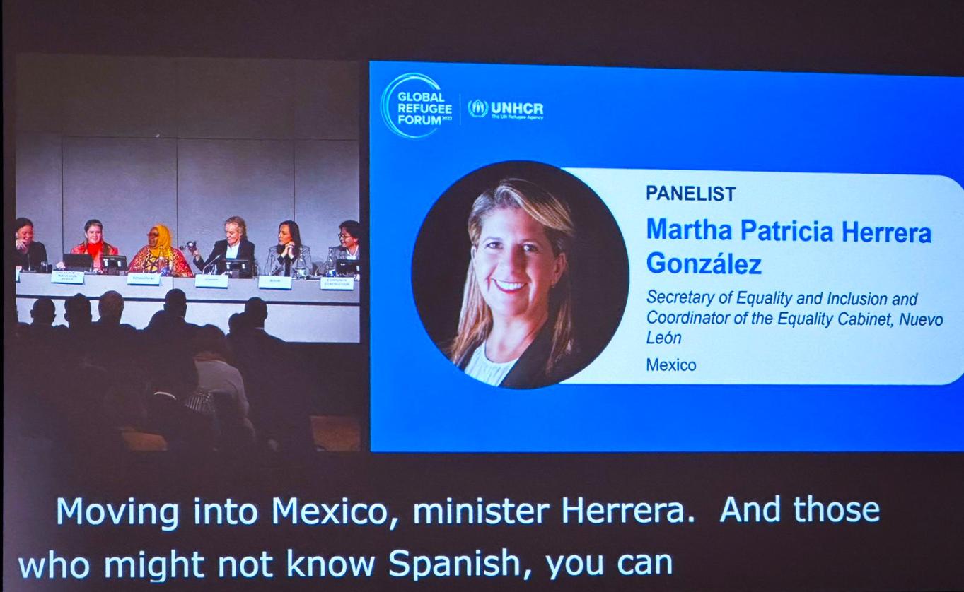 Ginebra, Suiza.- Al participar en el Foro Mundial sobre los Refugiados, organizado por la Oficina del Alto Comisionado de las Naciones Unidas para los Refugiados (ACNUR), la secretaria de Igualdad e Inclusión, Martha Herrera, aseguró que la promoción de los valores de igualdad, no discriminación y justicia, no conocen fronteras ni barreras, por lo que Nuevo León seguirá escuchando y acompañando a las personas migrantes y refugiadas, abrazando las diferencias y aprendiendo de la riqueza que radica en la diversidad.