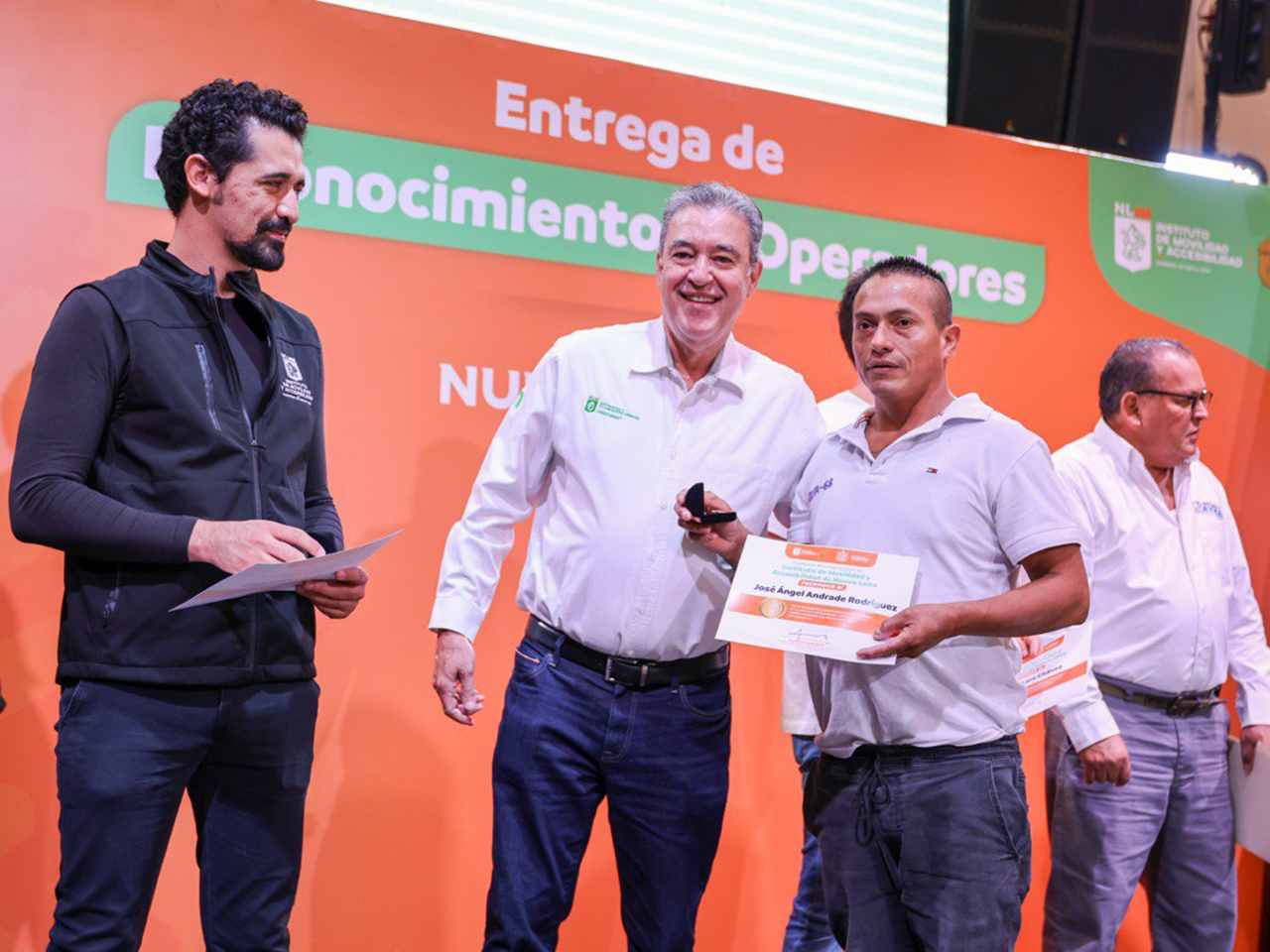Monterrey, Nuevo León.- Por su entrega, profesionalismo y ser una parte vital en la estrategia de movilidad, el Gobernador Samuel Alejandro García Sepúlveda entregó reconocimientos y una serie de apoyos a operadores del transporte público.