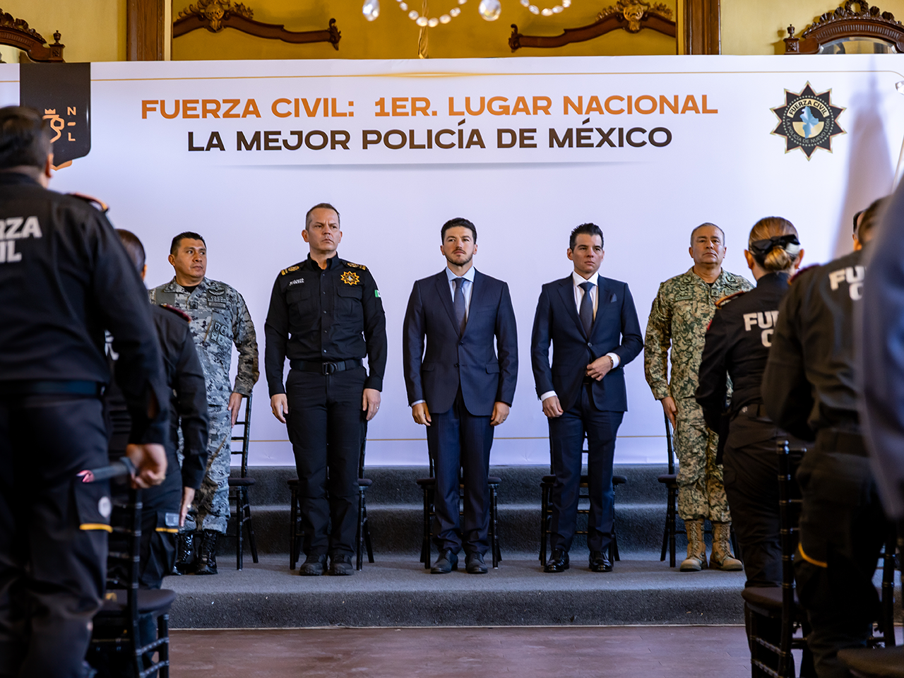 • Entrega Gobernador Samuel García reconocimientos a Mandos Operativos tras la designación  del Instituto Nacional de Estadística y Geografía (INEGI) a Fuerza Civil como la mejor policía de México.