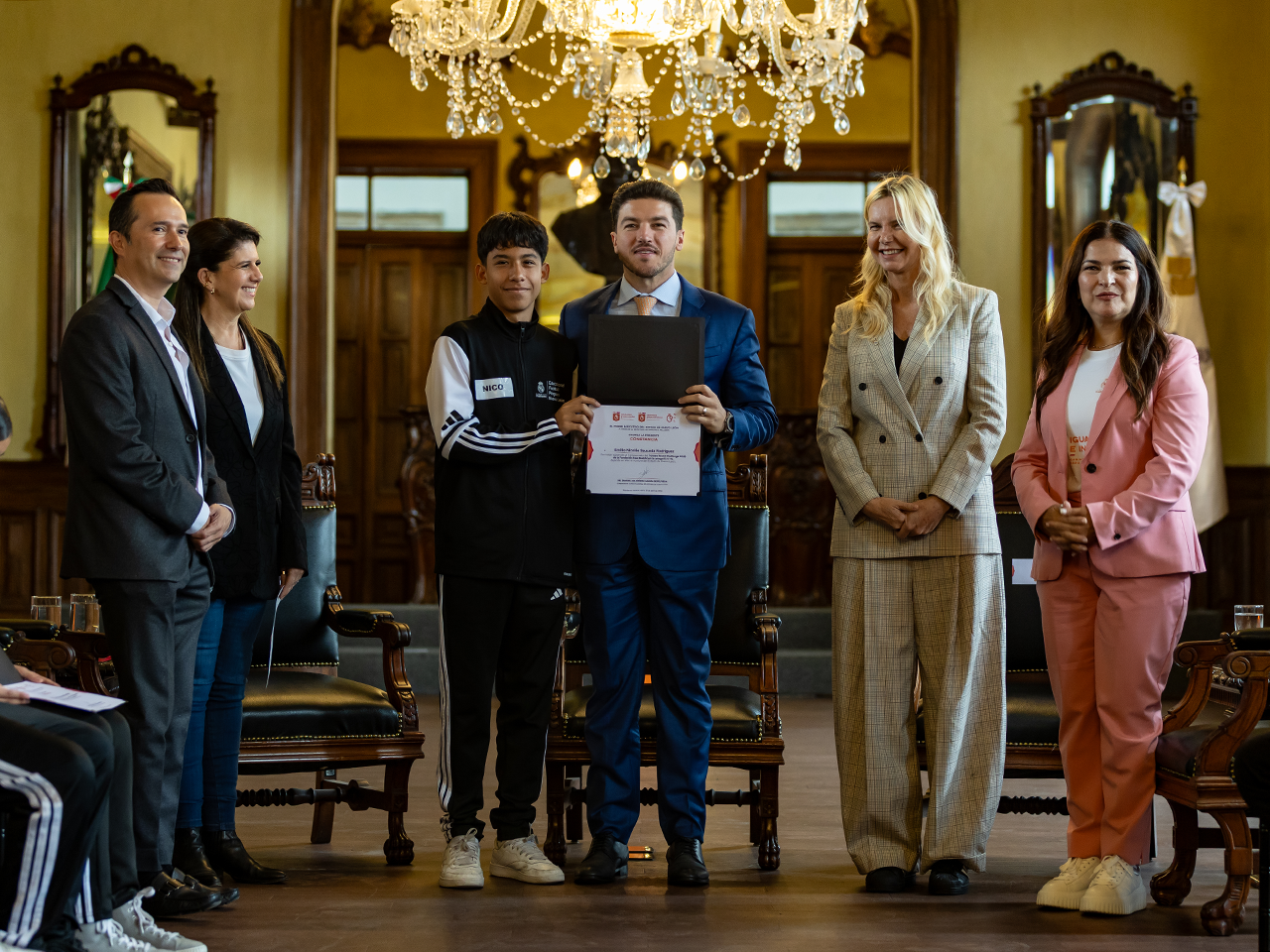 Monterrey, Nuevo León.- Para reconocer su participación y resultados obtenidos, el Gobernador Samuel Alejandro García Sepúlveda se reunió con los integrantes del equipo de Centros Comunitarios, campeones en el Torneo Amistoso de la Fundación Real Madrid World Challenge 2026.