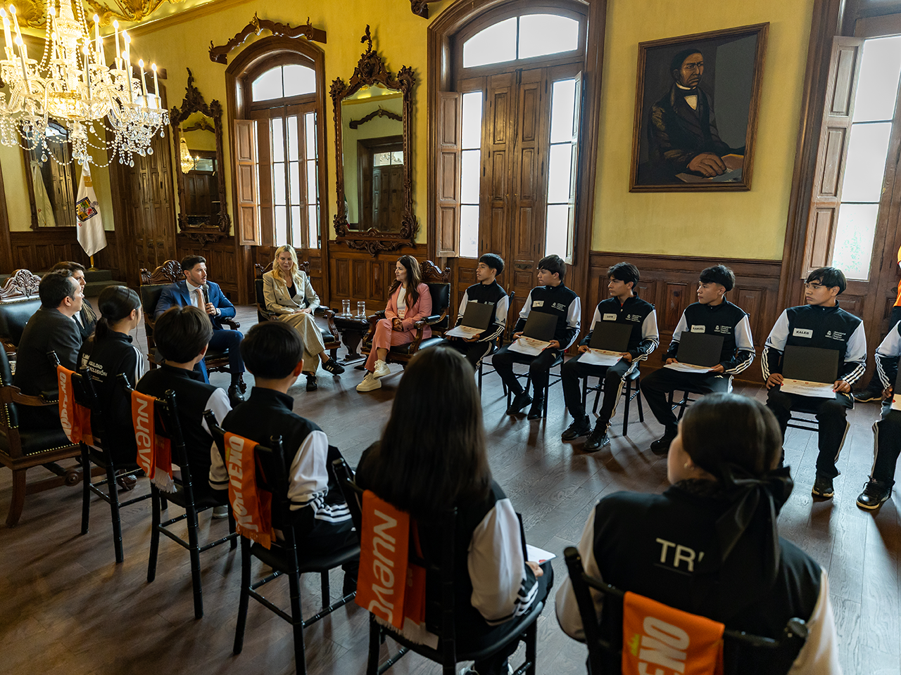 El Mandatario estatal recibió a las y los 12 jóvenes en el Salón Juárez de Palacio de Gobierno, donde sostuvo un diálogo abierto y tras hacer entrega de reconocimientos a cada uno, resaltó que como ellos ya consiguieron una medalla para la entidad, serán beneficiados con el apoyo del programa “Ayudemos a los Atletas”.