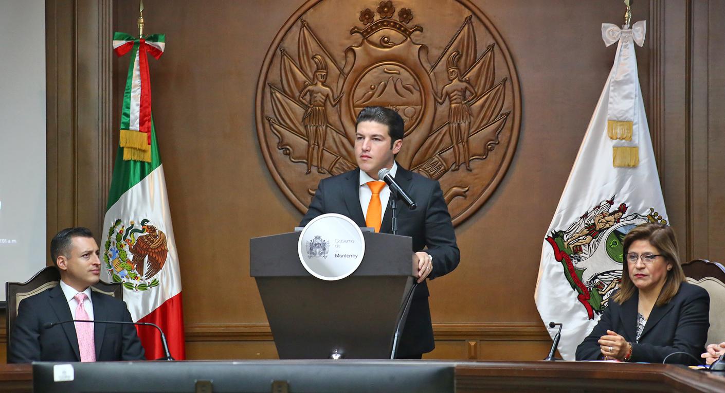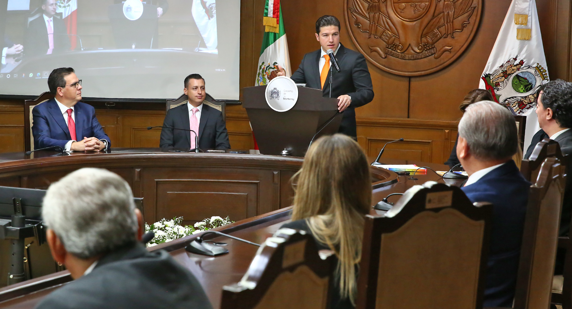 Ante representantes de los poderes Legislativo y Judicial, así como del Ejército Mexicano, el Gobernador Samuel García refrendó el compromiso de su Administración para apoyar en todo al municipio de Monterrey.
