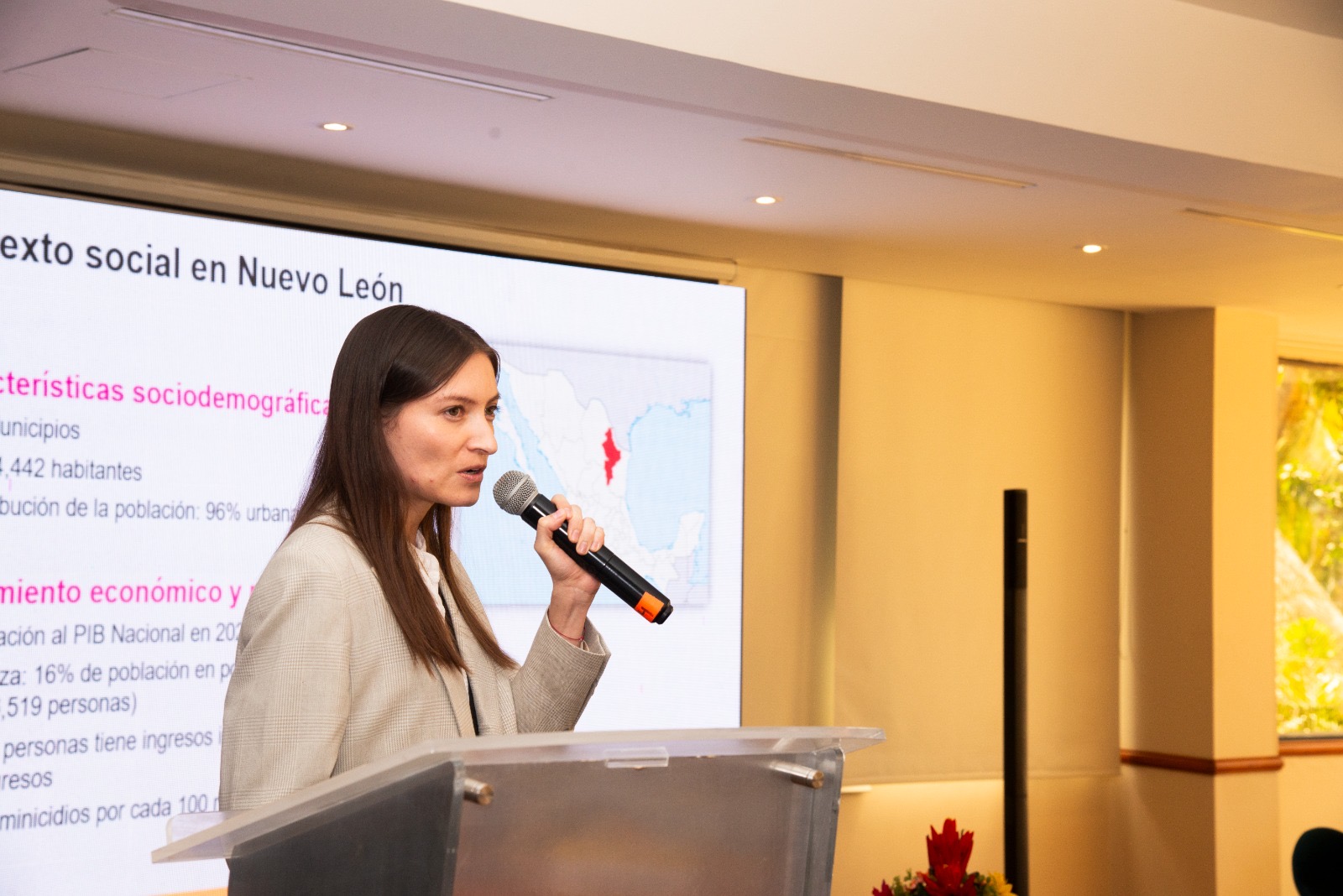 Monterrey, Nuevo León.- La Secretaría de Igualdad e Inclusión de Nuevo León presentó en Santa Marta, Colombia, la política social del Gobierno estatal, La Nueva Ruta: Incluir para Ser Iguales, estrategia que impacta en más de 1 millón 700 mil personas y ha contribuido a reducir la pobreza extrema en un 50 por ciento.