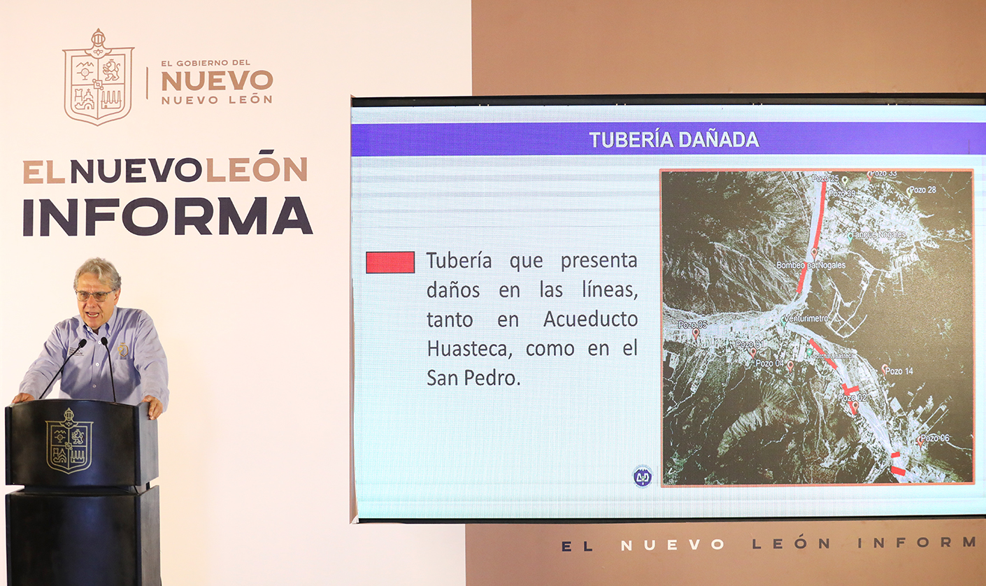 Monterrey, Nuevo León.- Agua y Drenaje de Monterrey trabaja a marcha forzada para reparar la infraestructura dañada y restablecer a la brevedad el servicio de agua en las zonas de la ciudad afectadas, principalmente en Santa Catarina y la parte sur de García, informó el titular de la dependencia Juan Ignacio Barragán.