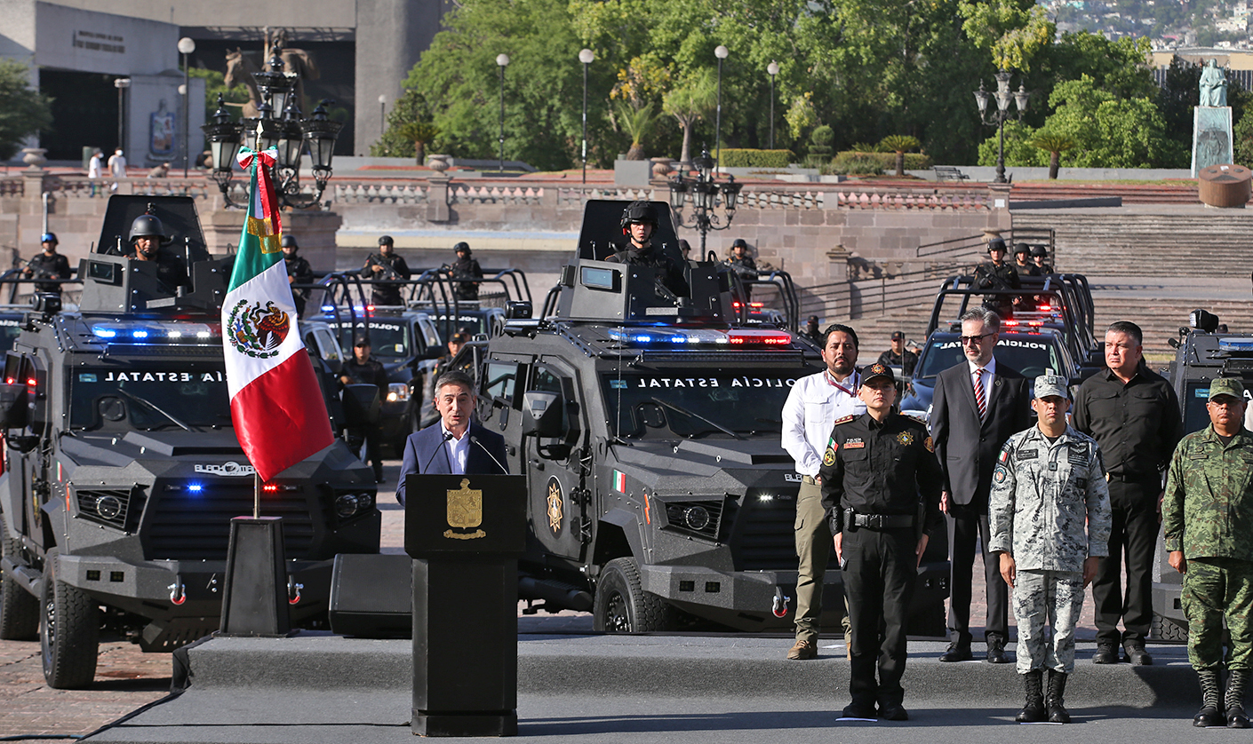 El Gobierno de Nuevo León, a través de la Institución Policial Fuerza Civil, fortaleció la infraestructura de esta corporación con la entrega de 57 nuevas patrullas y 5 unidades tácticas blindadas tipo Black Mamba.
