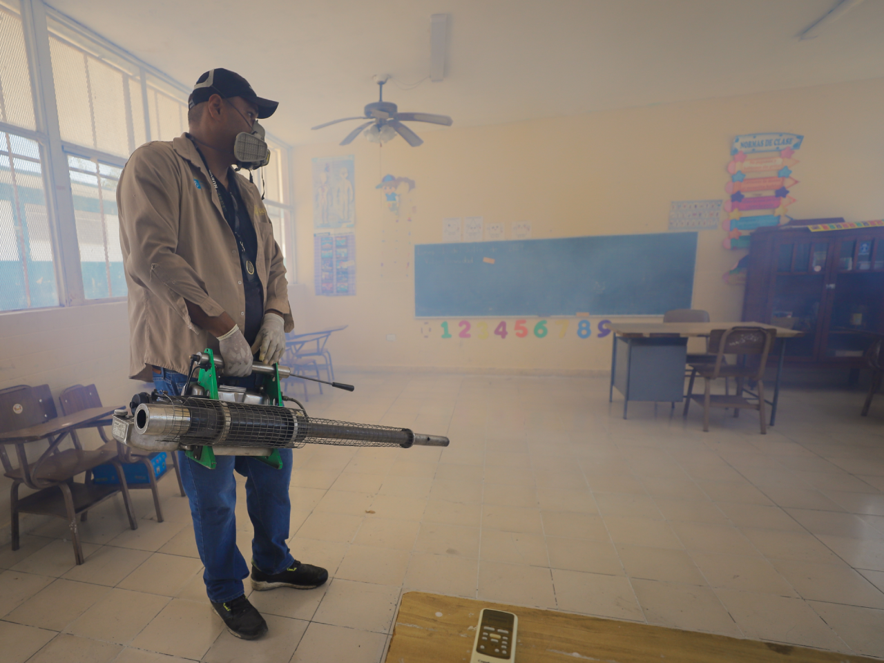 Monterrey, Nuevo León.- Ante el inicio del ciclo escolar, la Secretaría de Salud reforzó la fumigación contra el dengue y otros vectores en planteles educativos.
