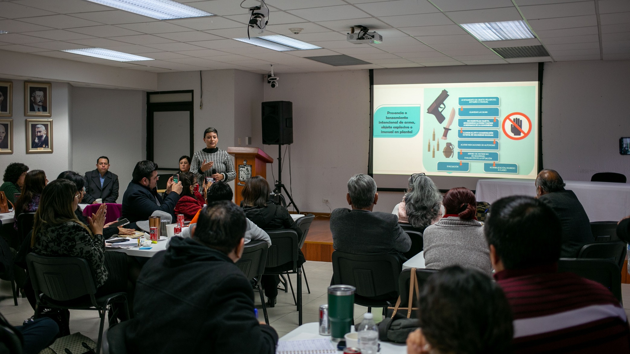 Durante el curso, en el que participaron, inspectores, supervisores y jefes de sector del nivel primaria, se hizo un repaso del Manual y protocolos de seguridad escolar, haciendo énfasis en los temas: amenazas, presencia de armas de fuego y armas blancas, así como en el Programa de Cuidado y Seguridad Humana (antes llamado Mochila Segura).