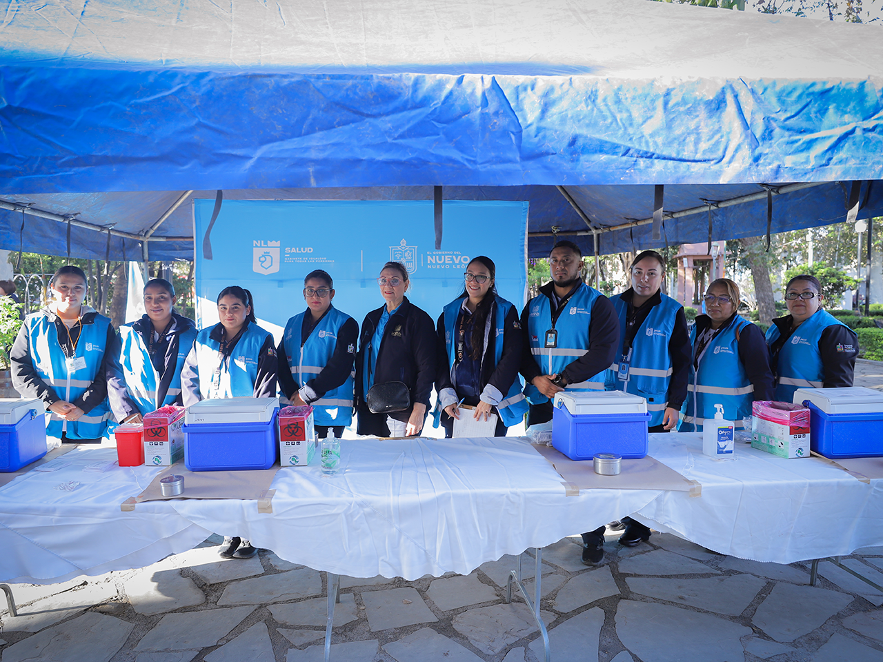 Cerralvo, Nuevo León.- Ante el inminente descenso en las temperaturas en el estado, la Secretaría de Salud continúa con su intensiva Campaña de Vacunación de la Temporada Invernal 2024-2025 con la instalación de un módulo Drive-Thru en la Plaza Principal del municipio de Cerralvo.