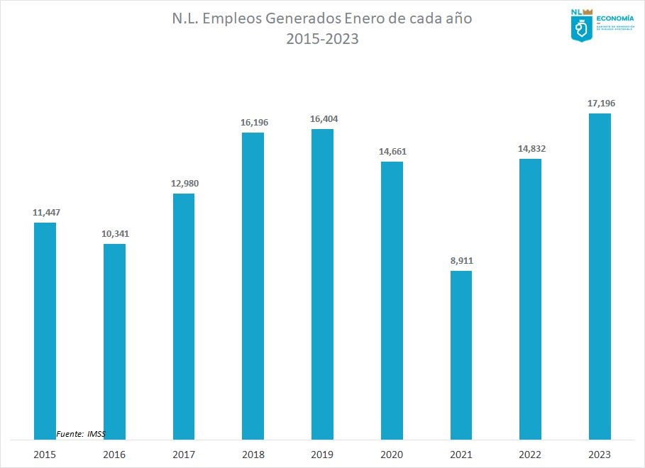 Durante enero, las empresas en Nuevo León crearon 17,196 nuevos empleos, de acuerdo con datos del IMSS.