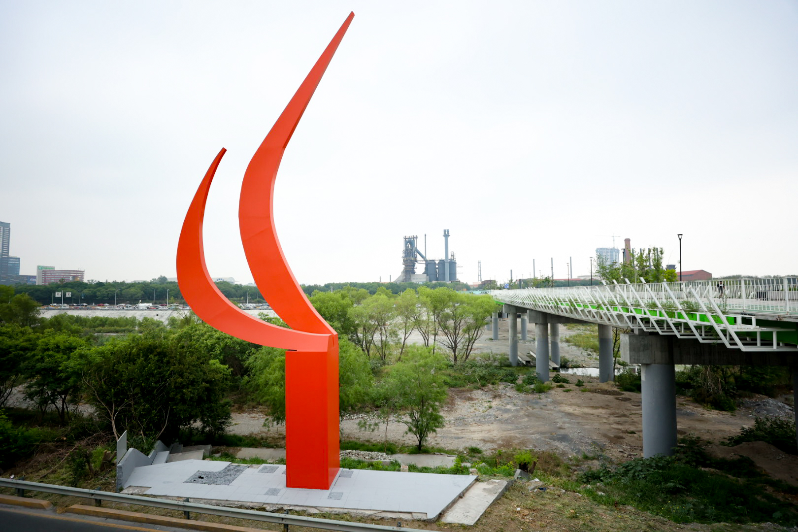 La Ruta Escultórica contempló establecer las obras escultóricas a lo largo de siete kilómetros del río Santa Catarina, en el llamado parque lineal, entre la avenida Gonzalitos y el Parque Fundidora. Los elementos escultóricos se ubicaron en el talud norte para ser apreciadas por los automovilistas en el sentido oriente a poniente de la avenida Constitución, como en el talud sur, de poniente a oriente por Morones Prieto.