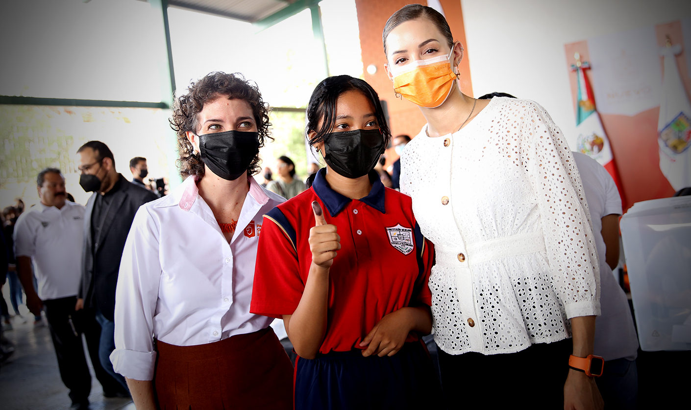Al acudir como invitada de honor a la votación para mejoras de la Escuela Secundaria Número 28 "Constitución Mexicana" en San Pedro, esto como parte del programa piloto de Proyectos Participativos, Mariana Rodríguez Cantú, de Amar a Nuevo León, destacó la importancia que tienen los niños, niñas y adolescentes en los procesos democráticos para la administración de la entidad.