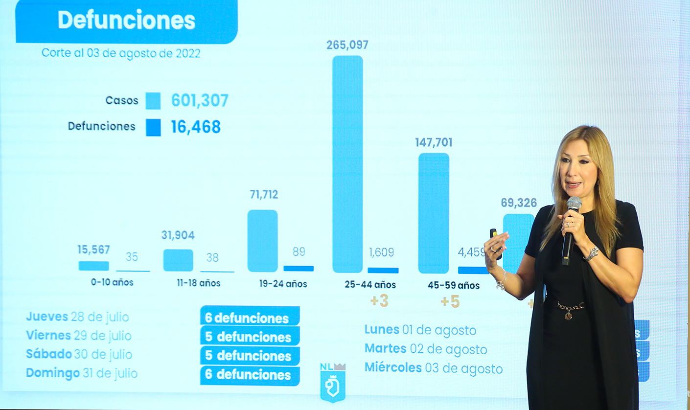Al corte del 3 de agosto de 2022 se registraron mil 760 nuevos casos, para un acumulado de 601 mil 307 casos; 3 nuevas defunciones, 16 mil 468 en total; y 131 personas hospitalizadas, de las que 10 están conectadas a un ventilador mecánico.