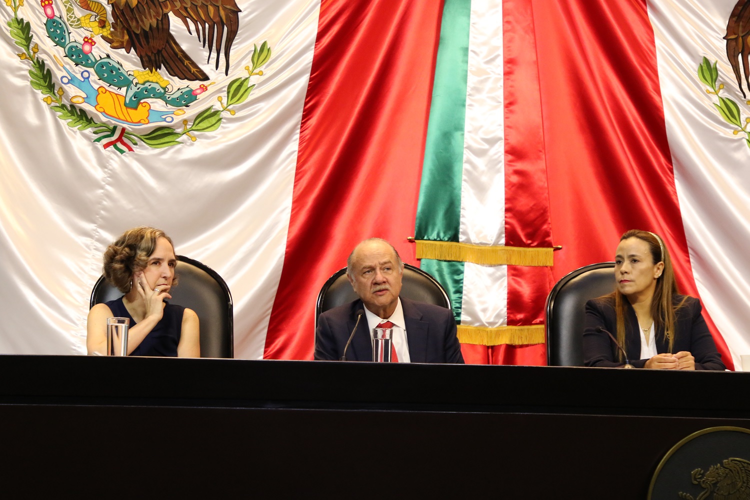 Al conversatorio asistieron autoridades federales, funcionarios estatales, legisladores, diplomáticos y alumnos y docentes de la Universidad del Valle de México, la Universidad del Desarrollo Empresarial y Pedagógico, el Colegio Universitario MIIB e IMES Universitarios.