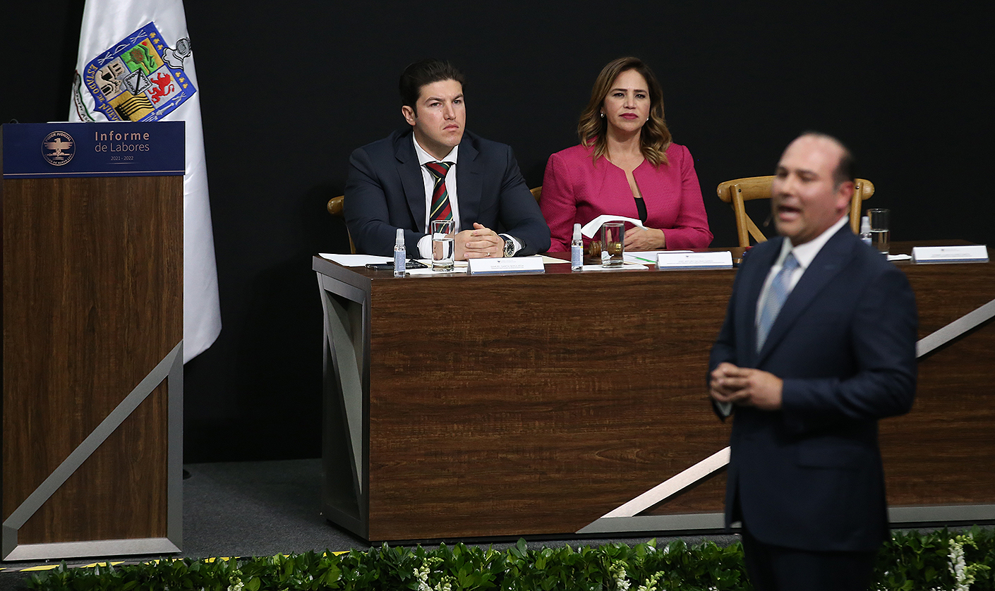 La nueva Constitución, la Reforma Laboral y otras estrategias innovadoras en el plano judicial, son pruebas de la coordinación de los poderes Ejecutivo, Judicial y Legislativo, así lo señaló el Gobernador Samuel Alejandro García Sepúlveda, al asistir al primer informe de labores del Presidente del Tribunal Superior de Justicia y del Consejo de la Judicatura, José Arturo Salinas Garza.