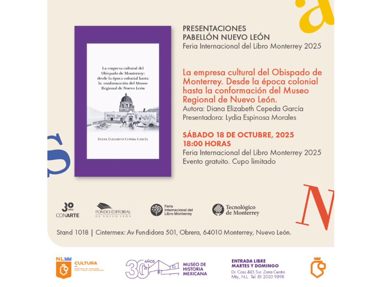 El evento es gratuito y forma parte de la presencia del Museo de Historia Mexicana en la Feria Internacional del Libro Monterrey.