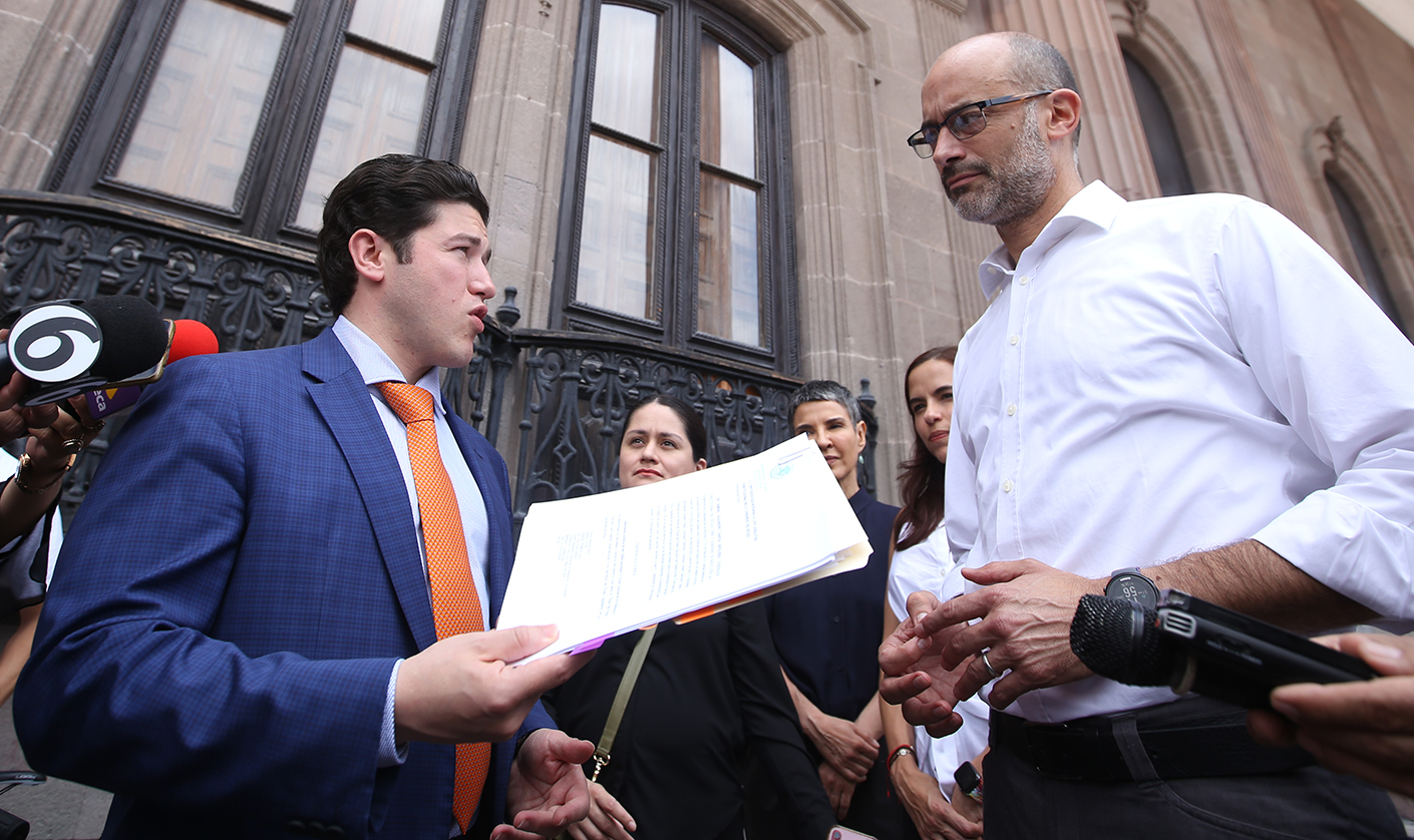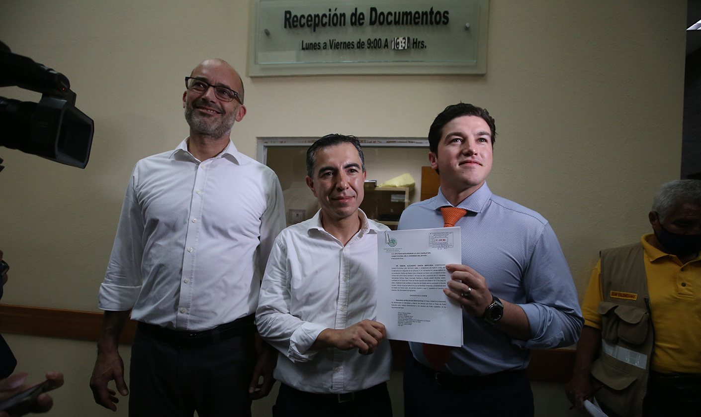 Acompañado por el alcalde de San Pedro, Miguel Treviño de Hoyos, y de colectivos de ciclistas, el gobernador entregó este veto en la Oficialía de Partes del recinto Legislativo,
