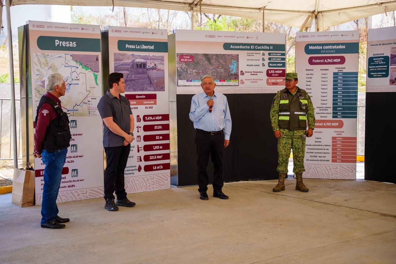 Samuel García y Presidente de la República supervisan obra del Acueducto El Cuchillo II