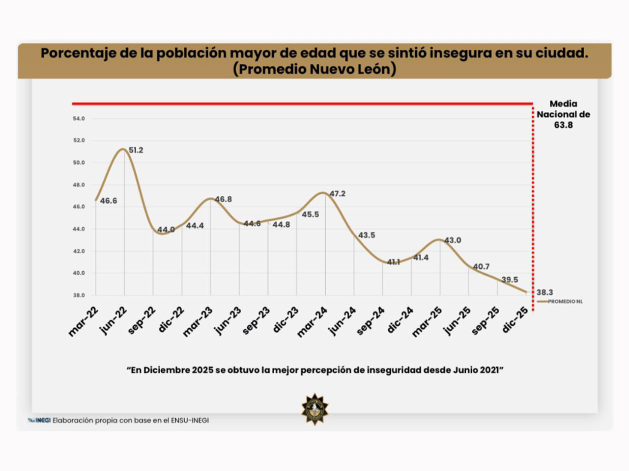 “Con todo el trabajo de estos 4 años, con la inversión histórica, con la creación de la nueva Fuerza Civil, sus helicópteros, su gente, su reclutamiento hemos logrado darle la vuelta y hay un una encuesta que hoy saca el ENSU donde ahora el 70 por ciento de Nuevo León se siente seguro”, agregó.