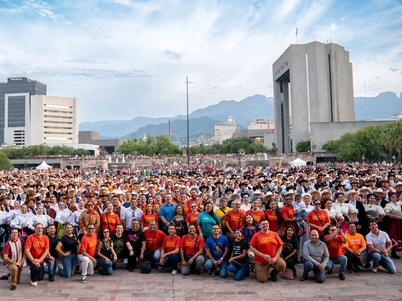 - Más de mil 600 bailarines se reunieron en la Macroplaza para celebrar el folclor de Nuevo León, bailando polka, chotis y huapango.