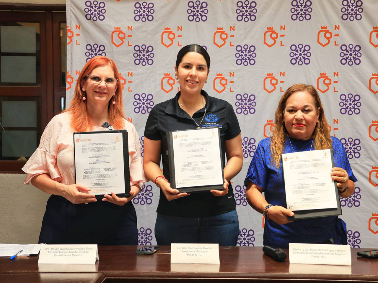 Luego se instaló la Unidad de Igualdad de Género Parás donde participaron Hinojosa Dieck; Ana Iza Oliveira Treviño, Presidenta municipal de Parás; y Elsa Edith Rodríguez Molina, Secretaria de las Mujeres municipal.