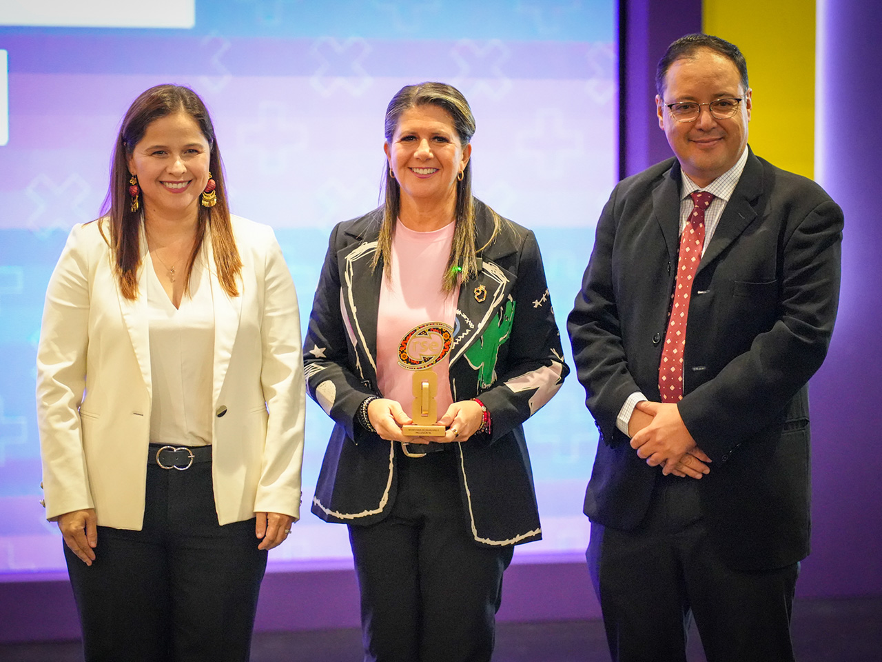 Durante la segunda edición del Encuentro Sumando Esfuerzos por Nuevo León, organizado por Red SumaRSE Nuevo León, la Secretaria Martha Herrera recibió el distintivo por parte de Evodio Sánchez, Director de Responsabilidad Social Empresarial en el Centro Mexicano para la Filantropía (Cemefi) y Ana Cecilia Herrera, Presidenta de Red SumaRSE NL.
