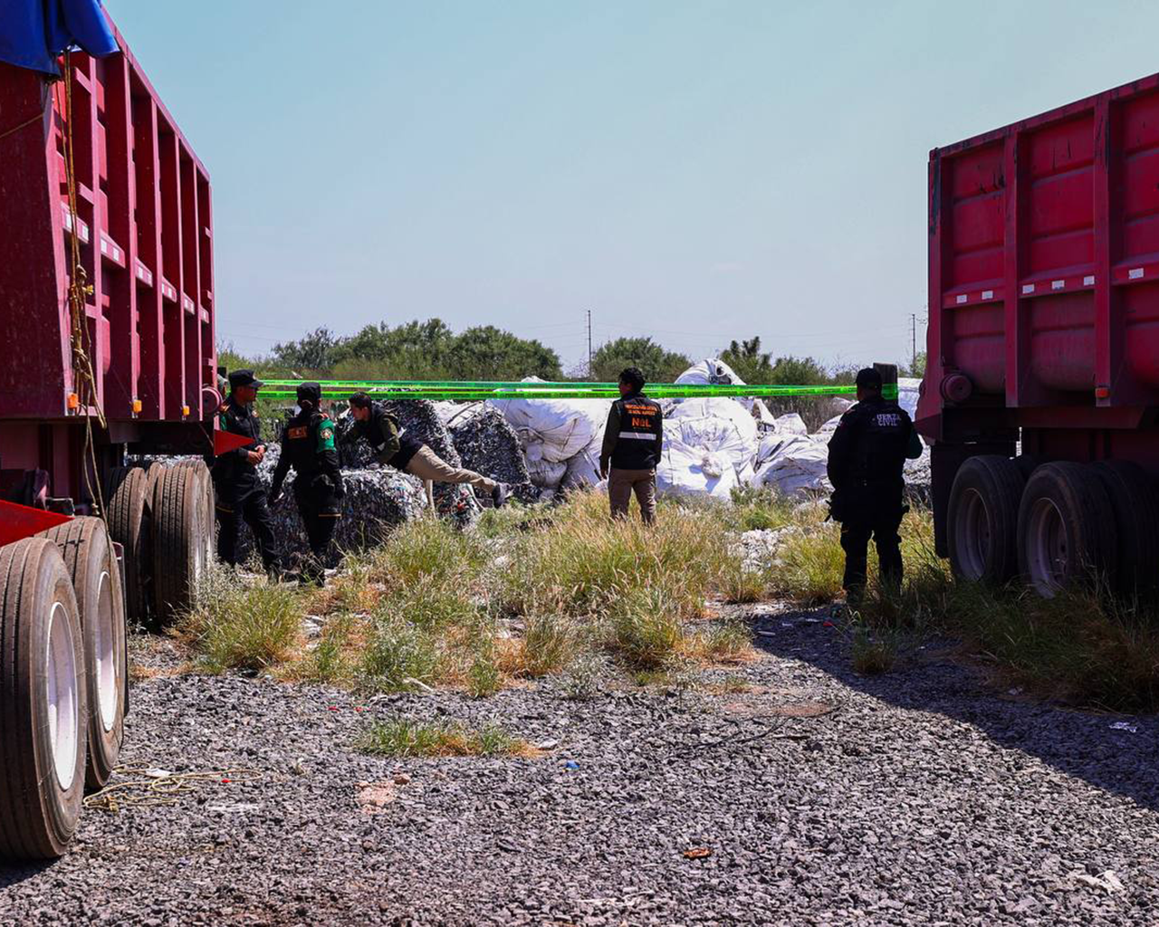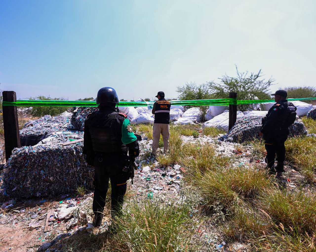 "Durante el recorrido realizado en el sitio, observaron residuos de manejo especial consistentes principalmente en PET, lonas plásticas y mangueras hidráulicas, también se observaron residuos peligrosos consistentes en contenedores de resina, los cuales se encontraban dispersos dentro del predio en tres áreas de aproximadamente 7 mil 500 metros cuadrados en total, sobre suelo natural y a cielo abierto, representando un caso de contaminación ostensible al suelo." Expresó Raúl Lozano Caballero, Secretario de Medio Ambiente de Nuevo León.