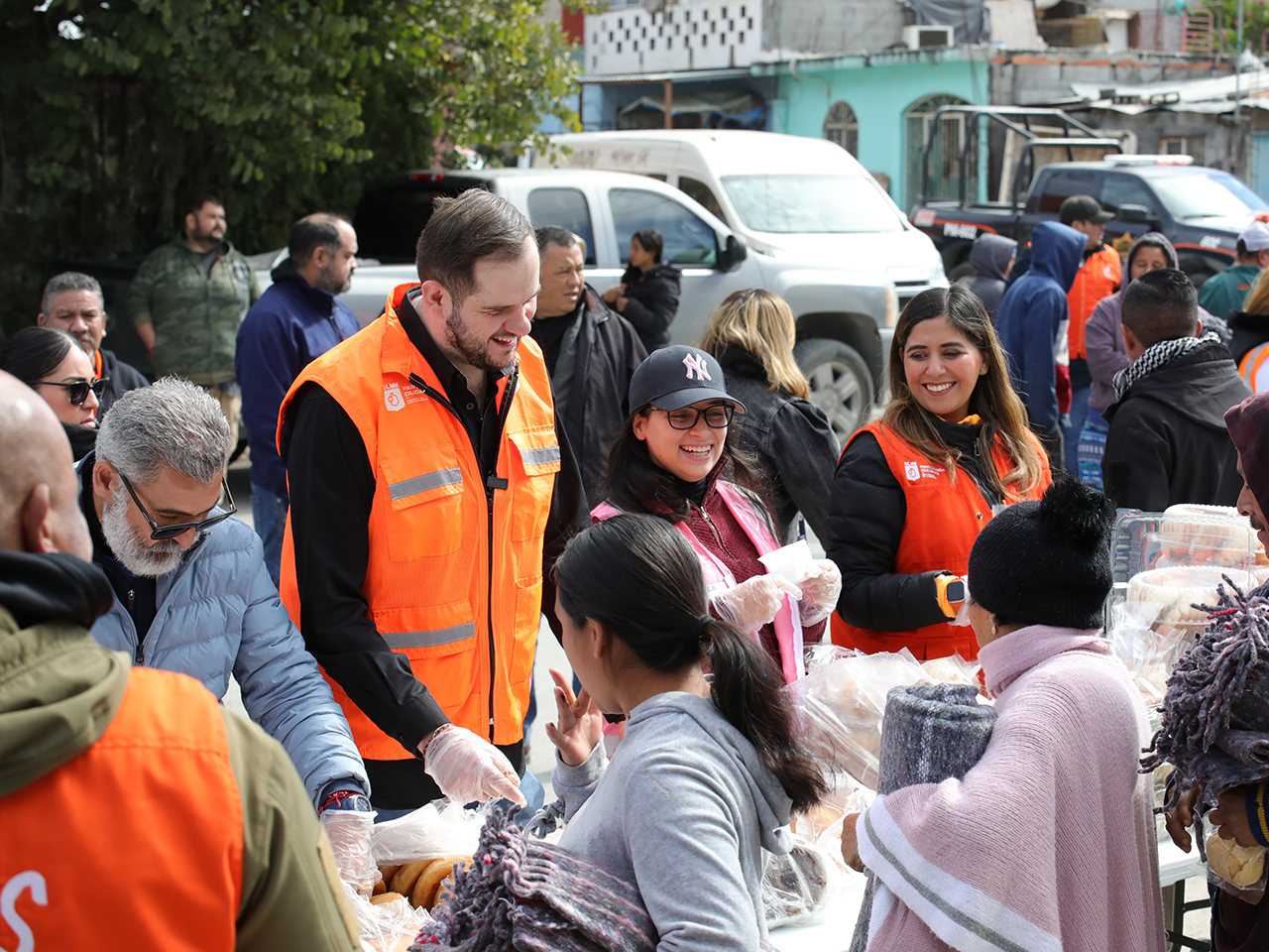 Monterrey, Nuevo León.- Como parte de la estrategia implementada por el Gobierno del Estado en apoyo a la ciudadanía ante la llegada del frente frío número 24 a la entidad, el Secretario de Participación Ciudadana, Daniel Acosta Fregoso, hizo entrega de cobijas y bebidas calientes en el municipio de Juárez y distintas colonias de Monterrey.