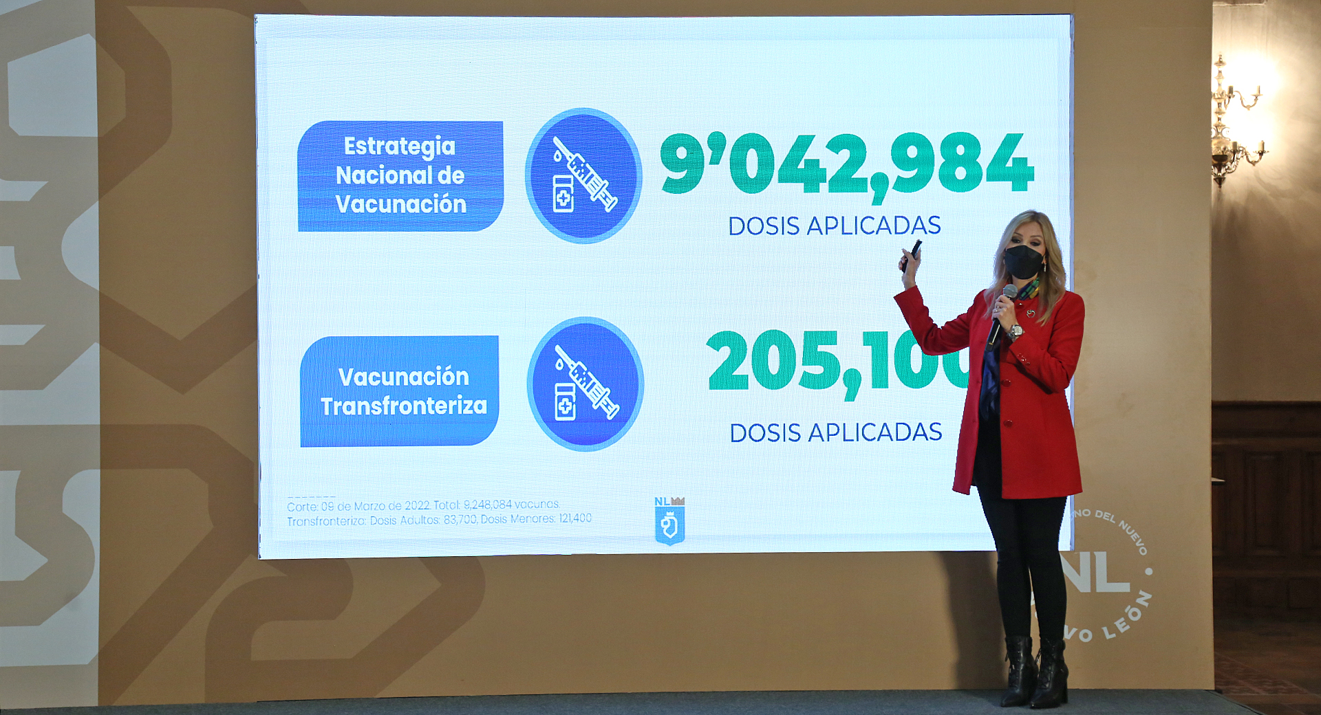 Señaló que a la fecha, se han aplicado 9 millones 42 mil 984 dosis a través de la Estrategia Nacional de Vacunación, y 205 mil 100 dosis a través de la Vacunación Transfronteriza.