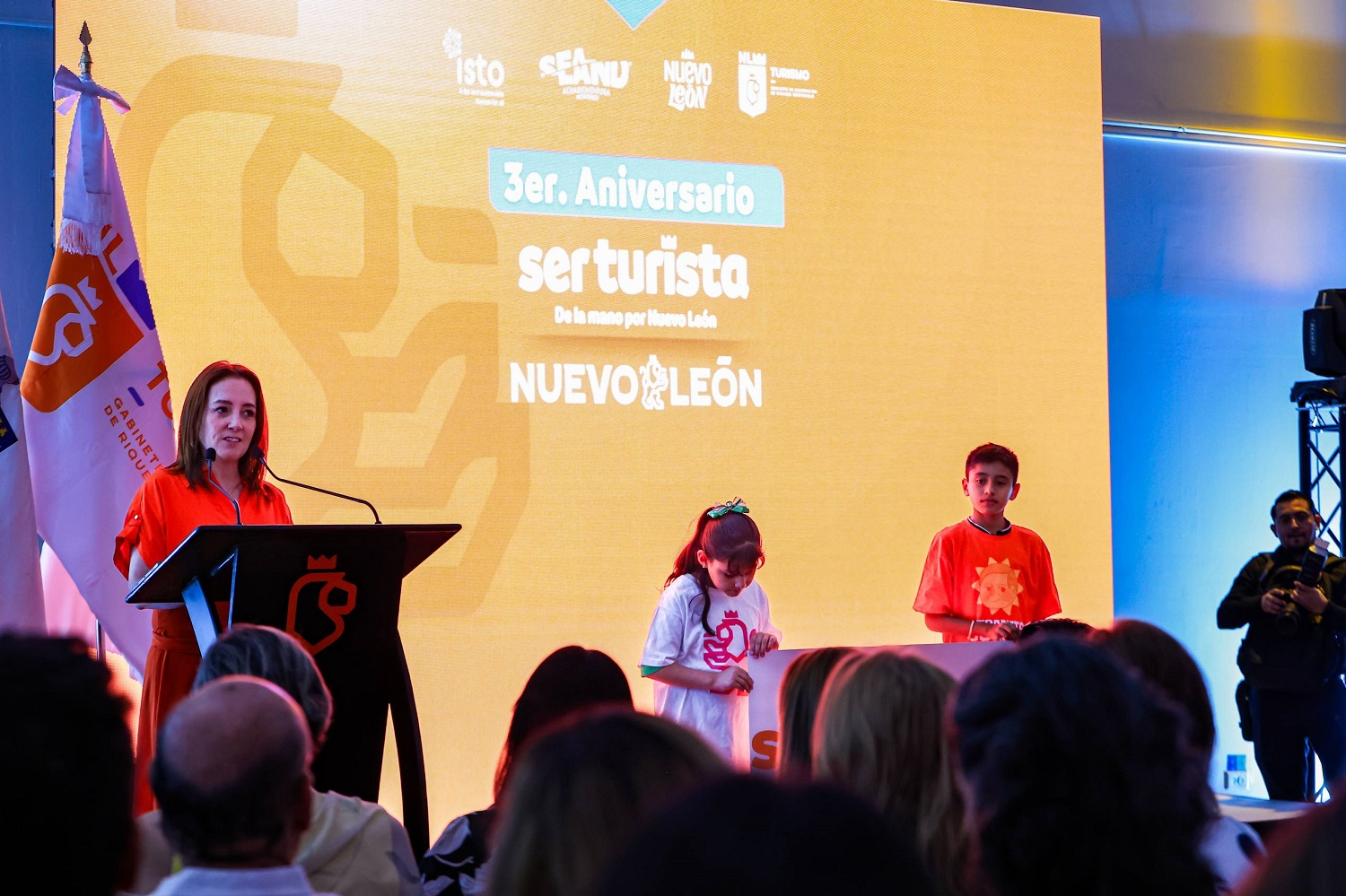 La ceremonia se realizó en el Acuario Sealand Monterrey, con la presencia de la secretaria de Turismo, Maricarmen Martínez Villarreal, acompañada por Martha Patricia Herrera González, secretaria de Igualdad e Inclusión; Melissa Segura Guerrero, secretaria de Cultura; Betsabé Rocha Nieto, secretaria de Economía.