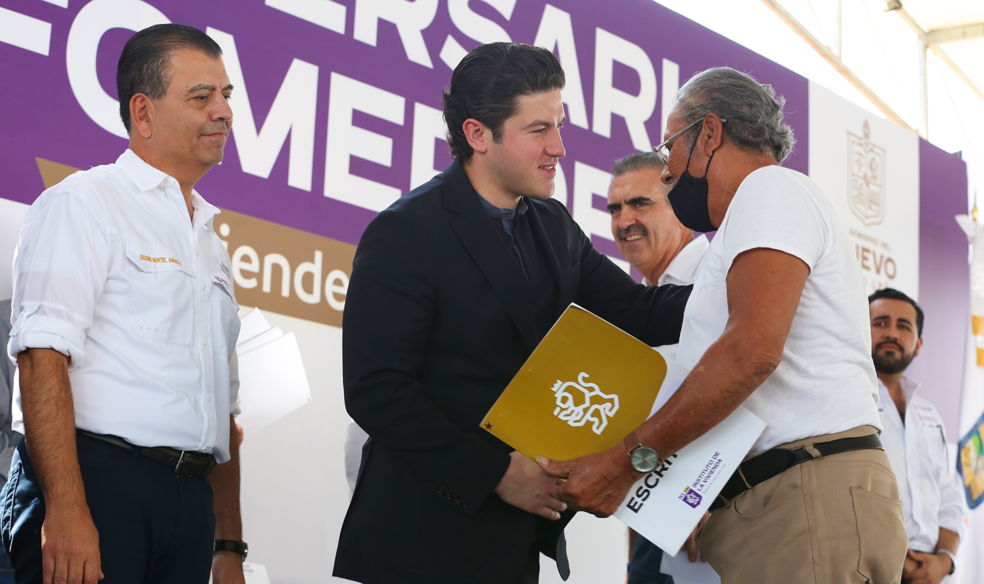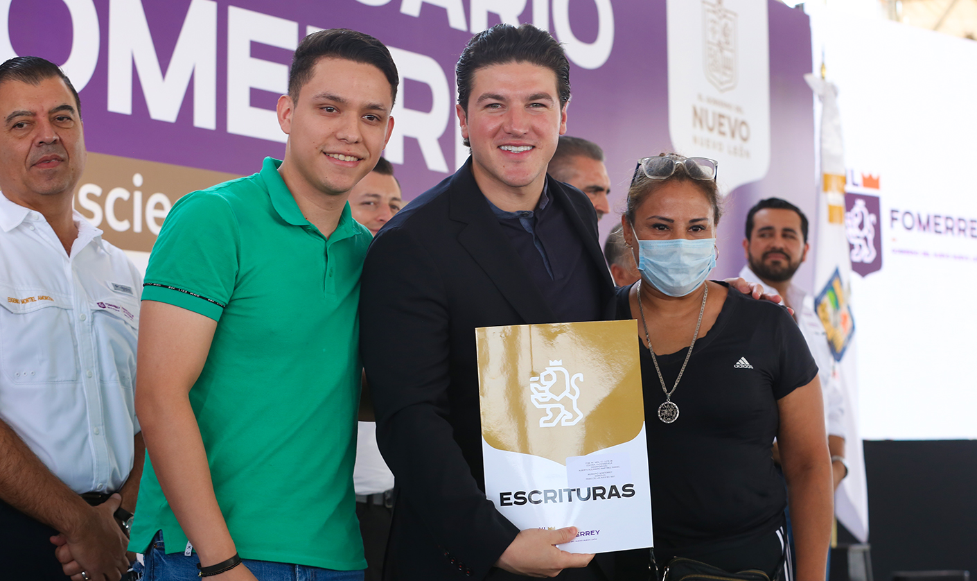Durante del evento el Gobernador entregó escrituras a familias de los municipios de Monterrey, Apodaca, Santa Catarina y Escobedo, quienes a partir de hoy, contarán con la certeza jurídica de sus casas.