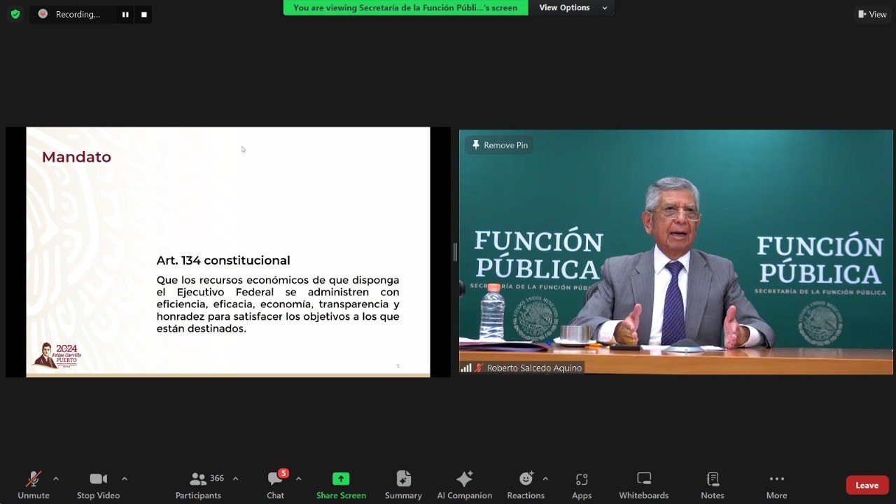 Explicó que, con base en sus funciones constitucionales, la SFP vigila que el Presupuesto de Egresos de la Federación aprobado por la Cámara de Diputados, que para 2024 es de 9.1 billones de pesos, se ejerza con transparencia y honradez para satisfacer los objetivos a los que están destinados.