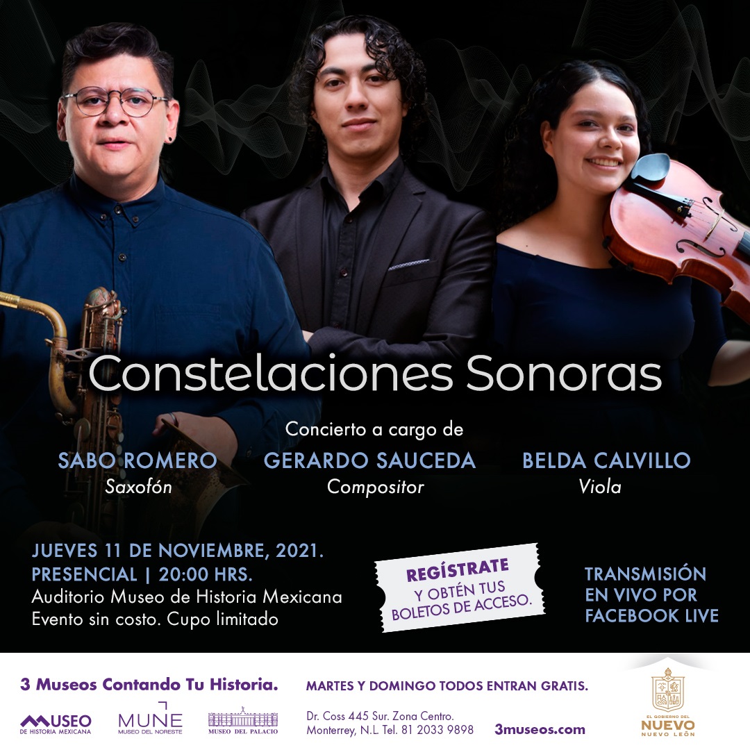 Las Constelaciones sonoras y 96- Soberanías Sonoras, mostrarán el talento de los compositores nuevoleoneses contemporáneos que llenarán de música digital y percusiones el auditorio del Museo de Historia Mexicana, el 11 y 26 de noviembre a partir de las 20:00 horas.
