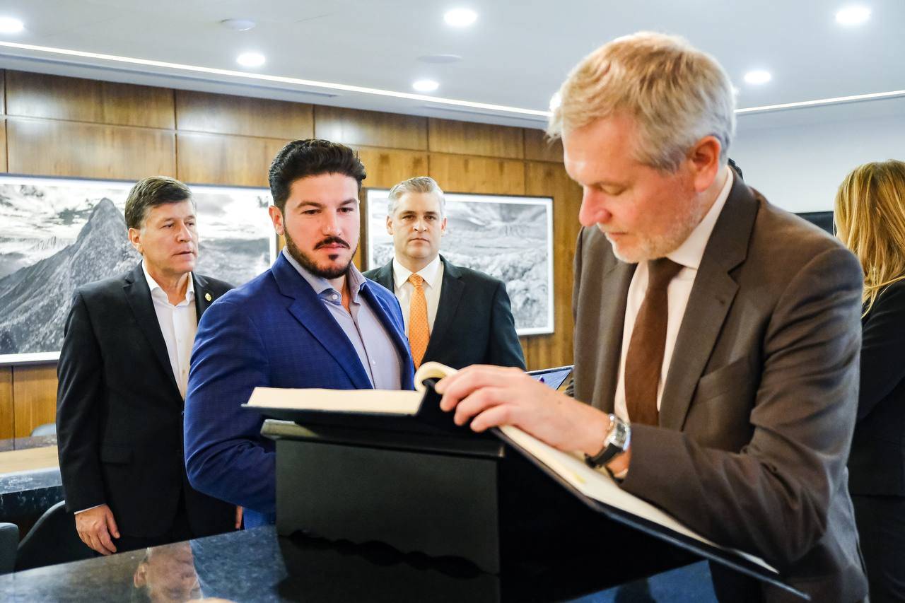 Con el propósito de conocer lo realizado en Nuevo León en temas de desarrollo sostenible y usos de la energía verde, el Gobernador Samuel Alejandro García Sepúlveda sostuvo hoy un encuentro con Gautier Mignot, Embajador de la Unión Europea en México.