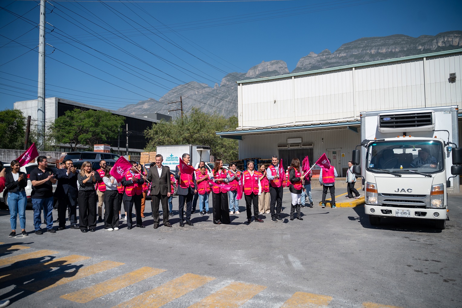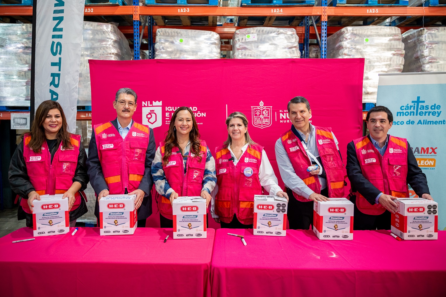 En el Banco de Alimentos de Cáritas de Monterrey, la Secretaria Martha Herrera y la Secretaria de Administración Gloria Morales, quien hizo entrega de una tonelada de ayuda, dieron  el banderazo de salida a 34 toneladas de víveres que serán entregadas a las personas damnificadas. Colecta que es posible gracias a la colaboración de la ciudadanía, iniciativa privada, organizaciones civiles, Universidades.