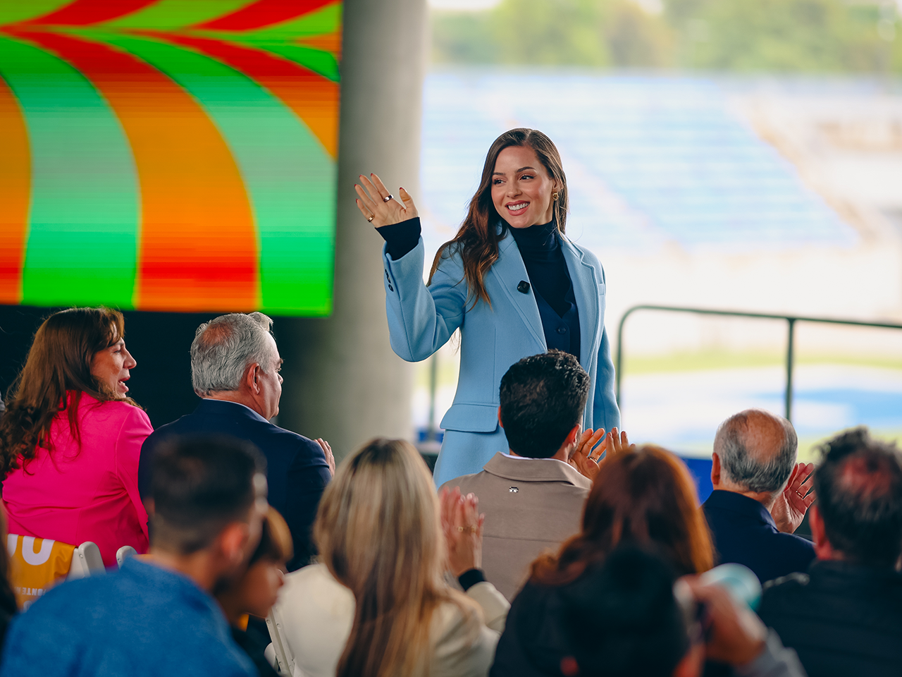 Mariana Rodríguez Cantú resaltó que la mejor versión de Nuevo León se construye con esfuerzo, con disciplina, con entrenamiento, con trabajo diario y con aliados que comparten el espíritu de grandeza como las empresas que se han sumado a “Ponte Nuevo, Ponte Mundial”.