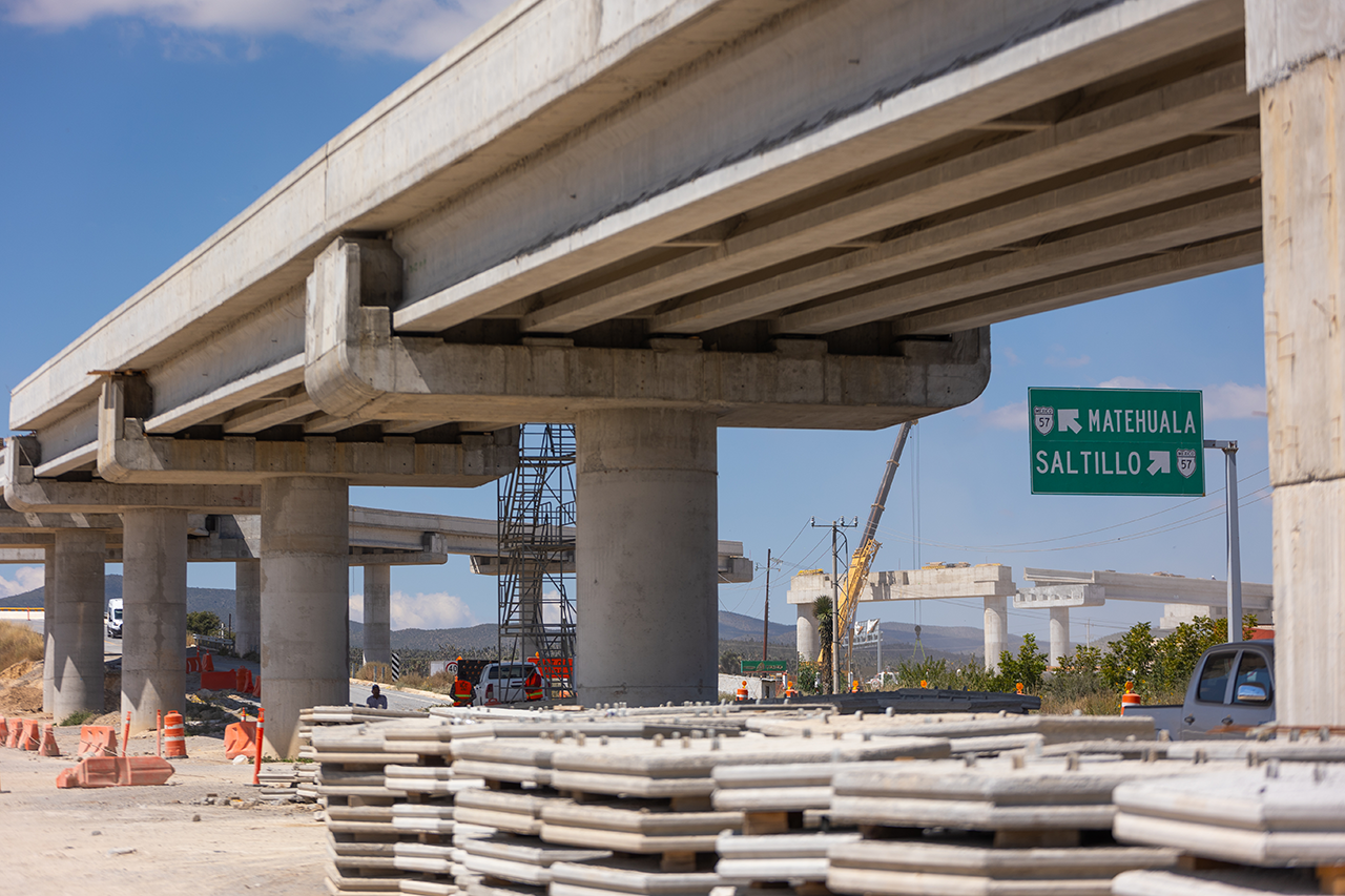 “Entonces los que vengan de Matehuala van a poder entrar a la Interserrana y los que vienen de Saltillo con este Puente (Distribuidor San Roberto) van a entrar a la Interserrana. Con la Interserrana de Galena a la Ciudad de Monterrey vamos a hacer dos horas con una gran carretera que va a tener túneles, puentes, pisos elevados, va a tener carga y mucha de esta carga que va a Estados Unidos ya no va a tener que entrar y rodear Saltillo ni Monterrey, se va a ir derecho por el periférico a Reynosa a Nuevo Laredo o a nuestra nueva aduana en el Puente Colombia”, agregó el Gobernador.